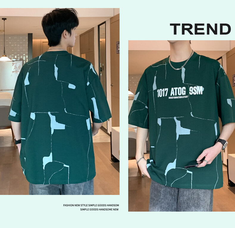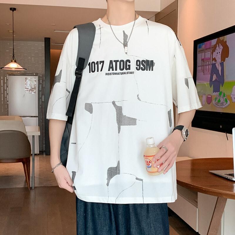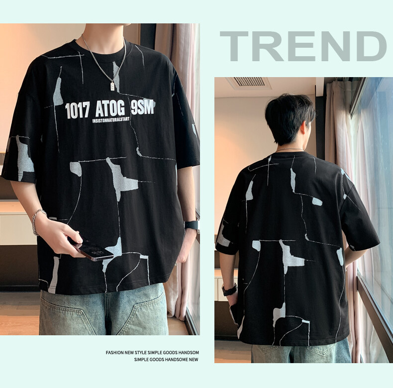 편지 반팔 남자 라운드 넥 여름 2025 새로운 스타일 십대 얇은 반팔 티셔츠 학생 패션 남성 탑스토어 가기