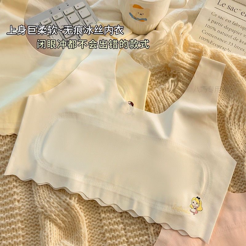발달 여자 속옷 9-16 세 소녀 튜브 탑 아이스 실크 원활한 조끼 중학생 통기성 브래지어 얇은스토어 가기