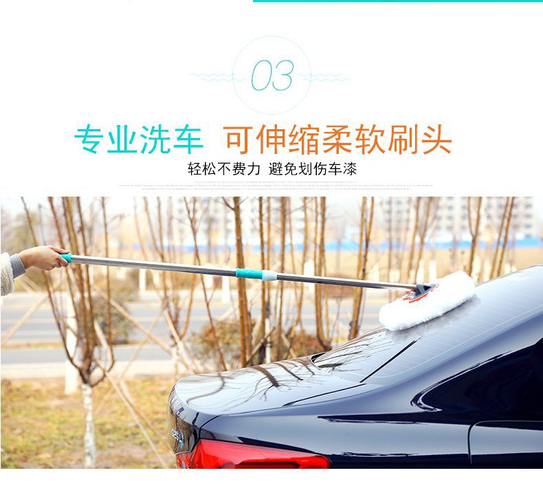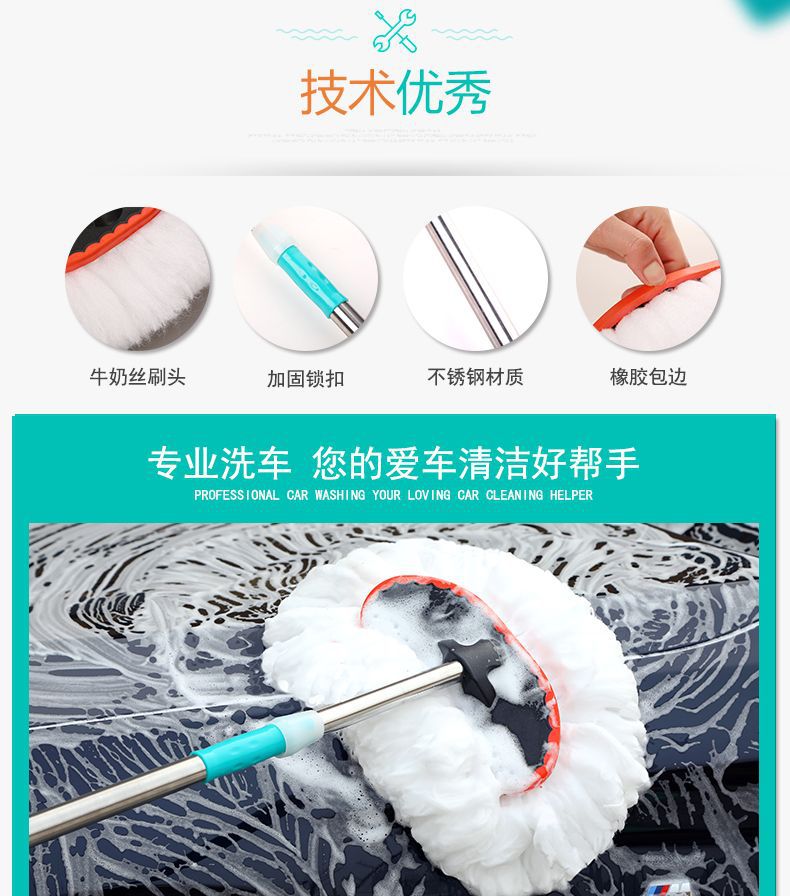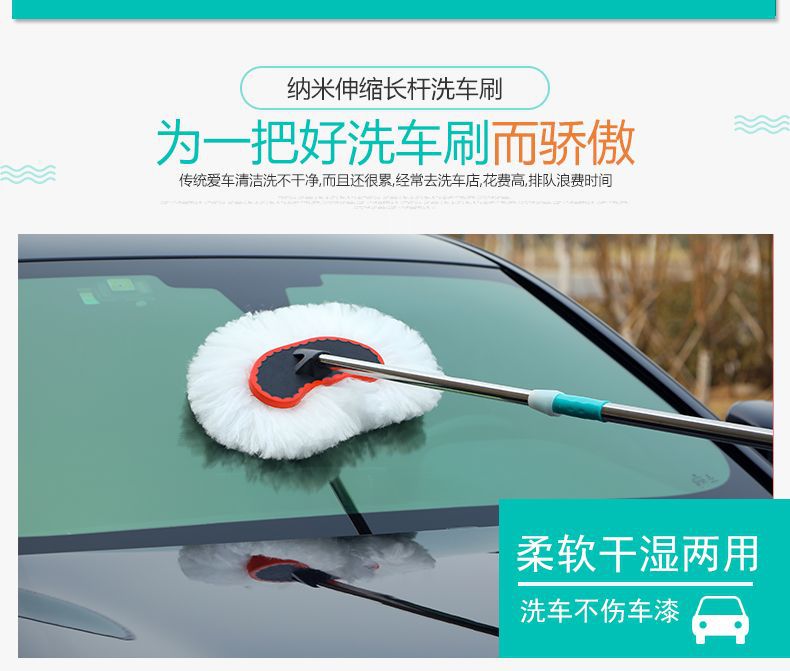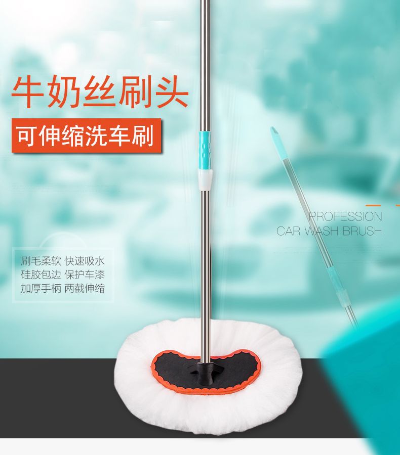 자동차 세차 걸레, 텔레스코픽 막대, 자동차 닦기 브러시, 세차 도구 브러시, 밀크 실크 부드러운 강모 자동차 세차 걸레스토어 가기