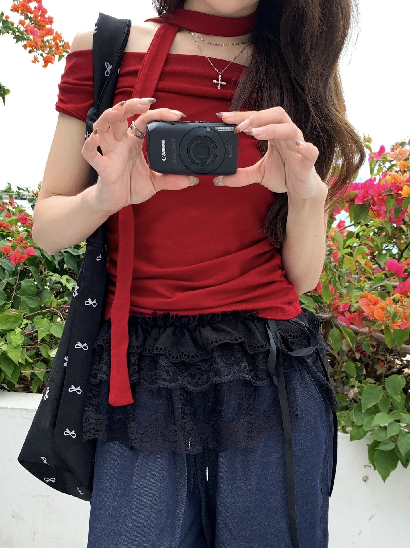 다양한 틈새 오리지널 디자인 한국 레이스 거즈 스커트 레이스 카트 커튼 삼각형 스카프 여성용 웨이브 레이스 스카프