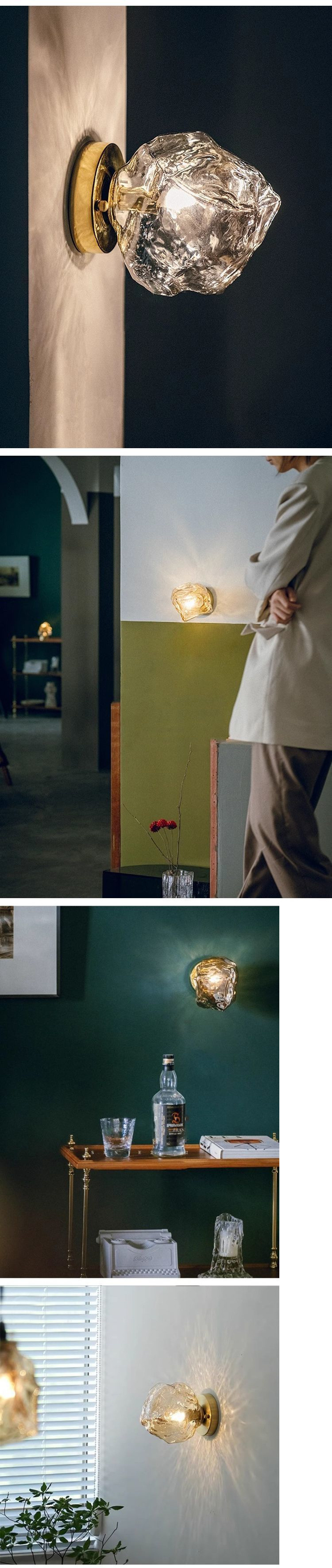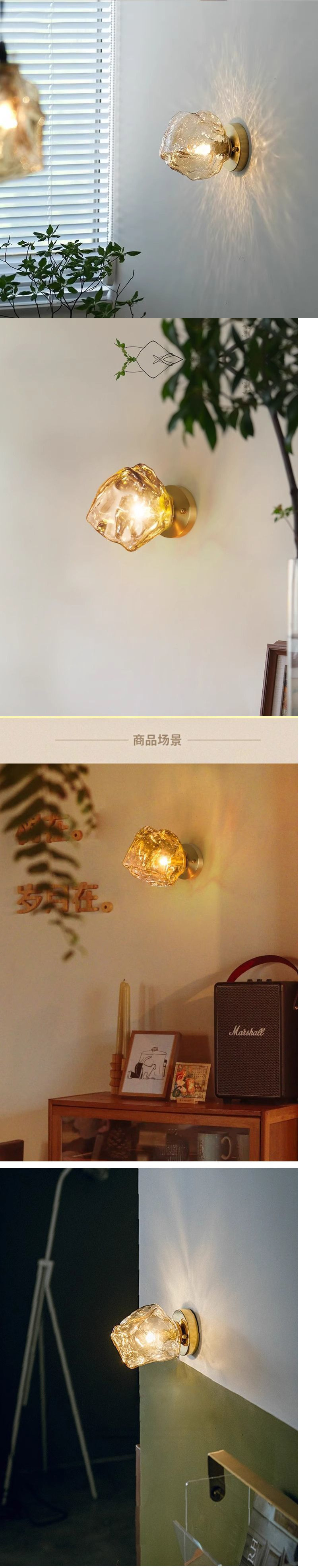 간단한 아이스 큐브 벽 램프 일본식 유리 침실 머리맡 램프 창조적 인 모양 간단한 복고풍 복도 통로 분위기 램프