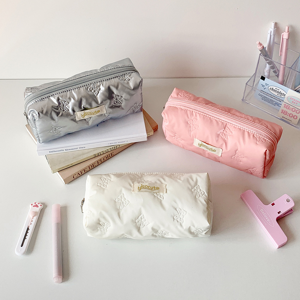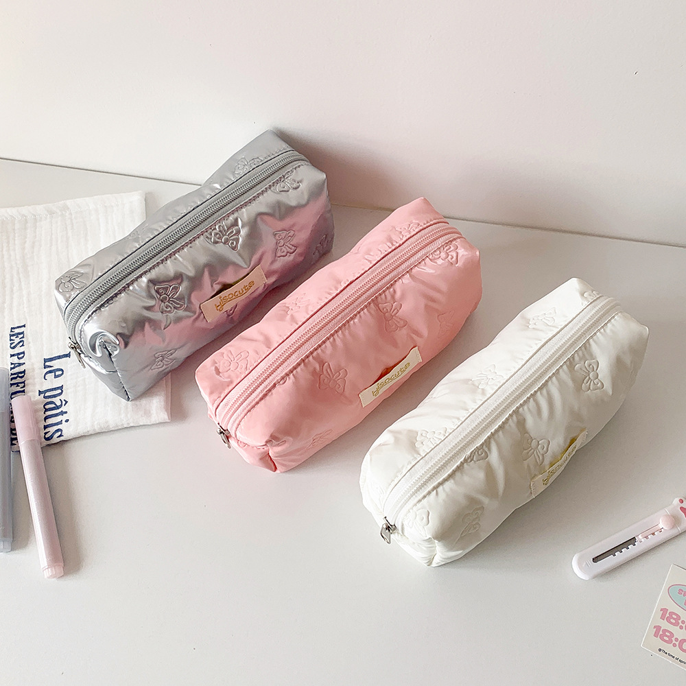 간단한 단색 초음파 양각 연필 가방 높은 색 나비 학생 문구 보관 가방 DIY 재료 보관 가방