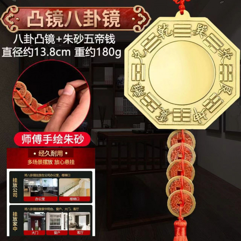 • 순수 구리 팔괘 거울 볼록 거울 진사 다섯 황제 동전 13.8cm 무료 끈끈한 고리