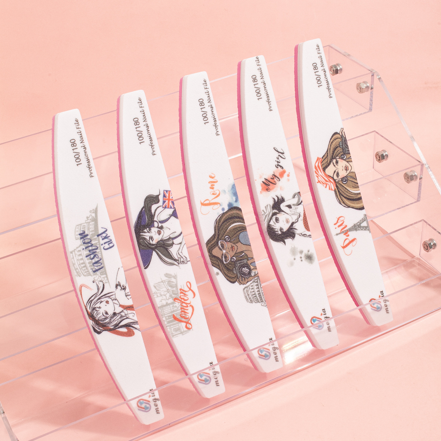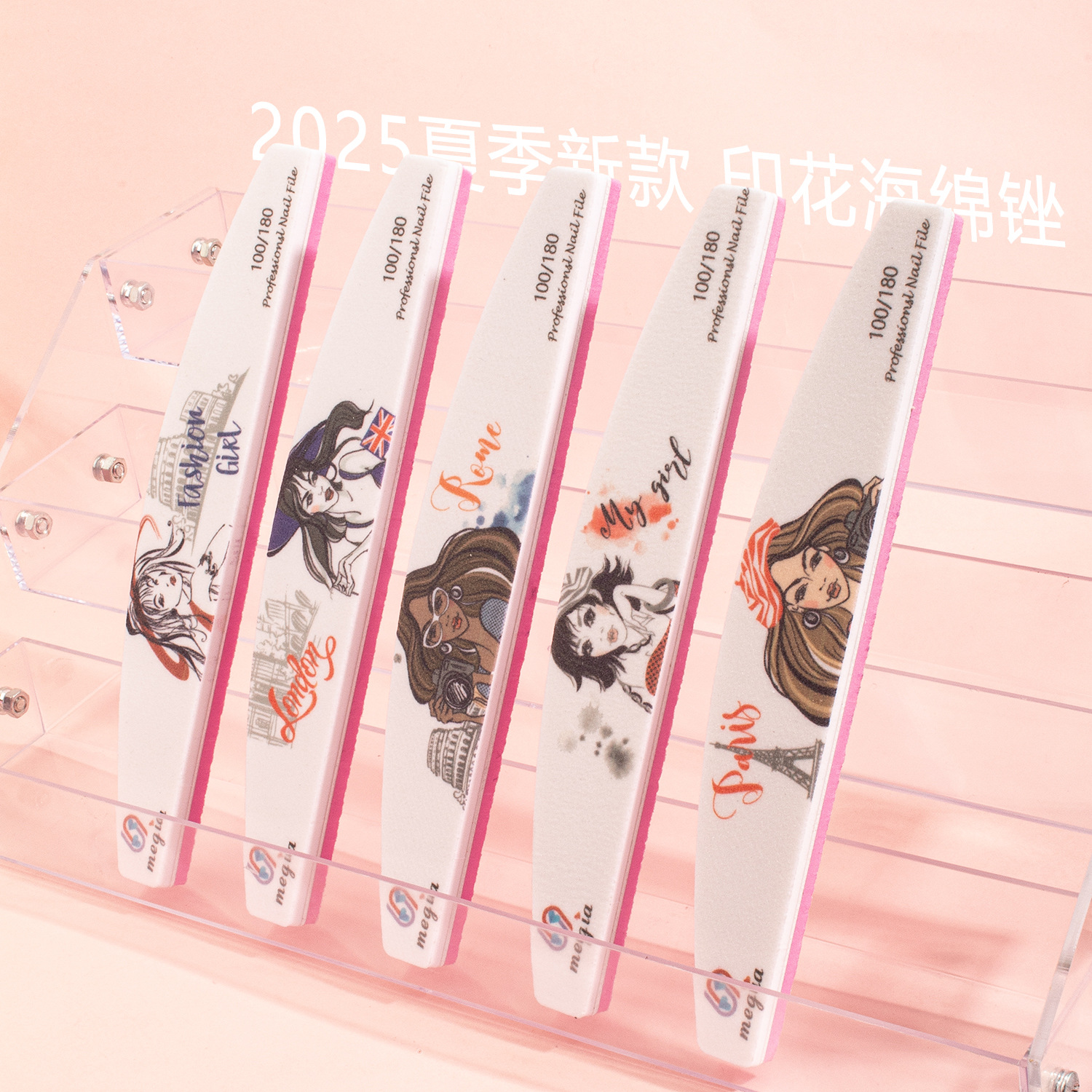 국경 간 인기 판매 고품질 네일 아트 인쇄 거즈 네일 파일 워시 시리즈 사포 반달 모양의 연마 샌딩 스트립스토어 가기