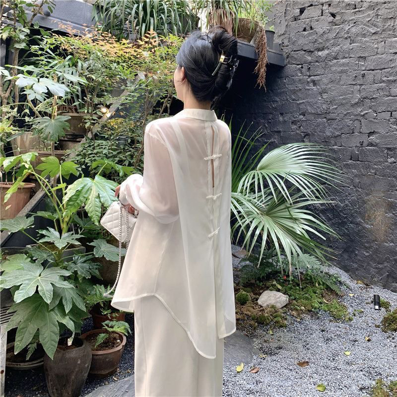 선스크린 셔츠 코트 여성 여름 얇은 새로운 중국 스타일 국가 스타일 긴 소매 카디건 느슨한 패션 쉬폰 외부 탑