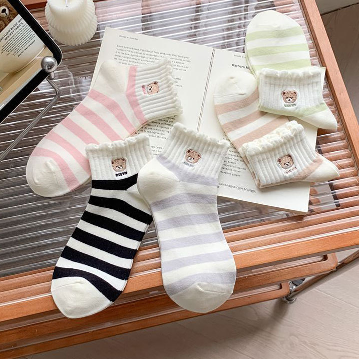 새로운 숙녀 양말 여름 얇은 패션 줄무늬 보트 양말 일본 귀여운 학생 스포츠 양말 도매스토어 가기