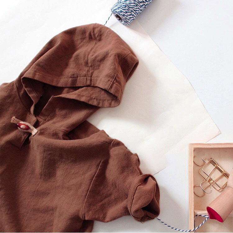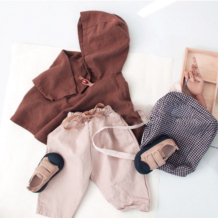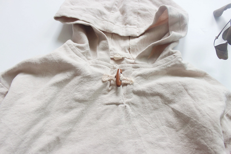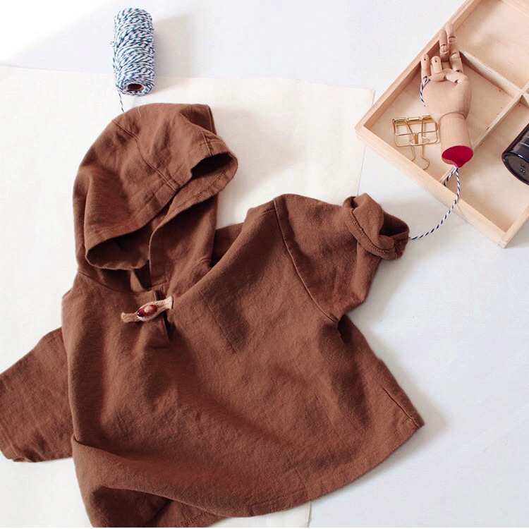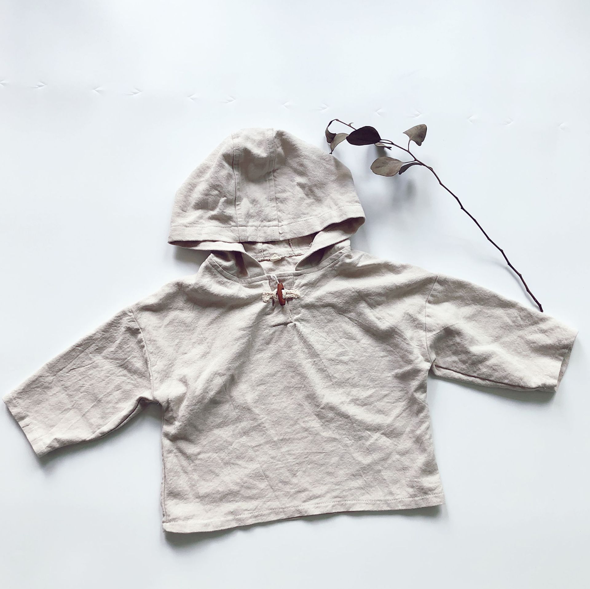 신제품 아동 코트 긴팔 봄 풀오버 소년 면 및 린넨 루즈한 한국식 여아 상의 후드 솔리드 컬러
