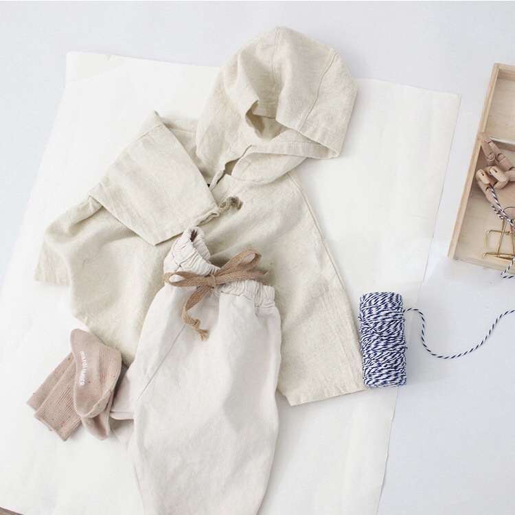 신제품 아동 코트 긴팔 봄 풀오버 소년 면 및 린넨 루즈한 한국식 여아 상의 후드 솔리드 컬러스토어 가기