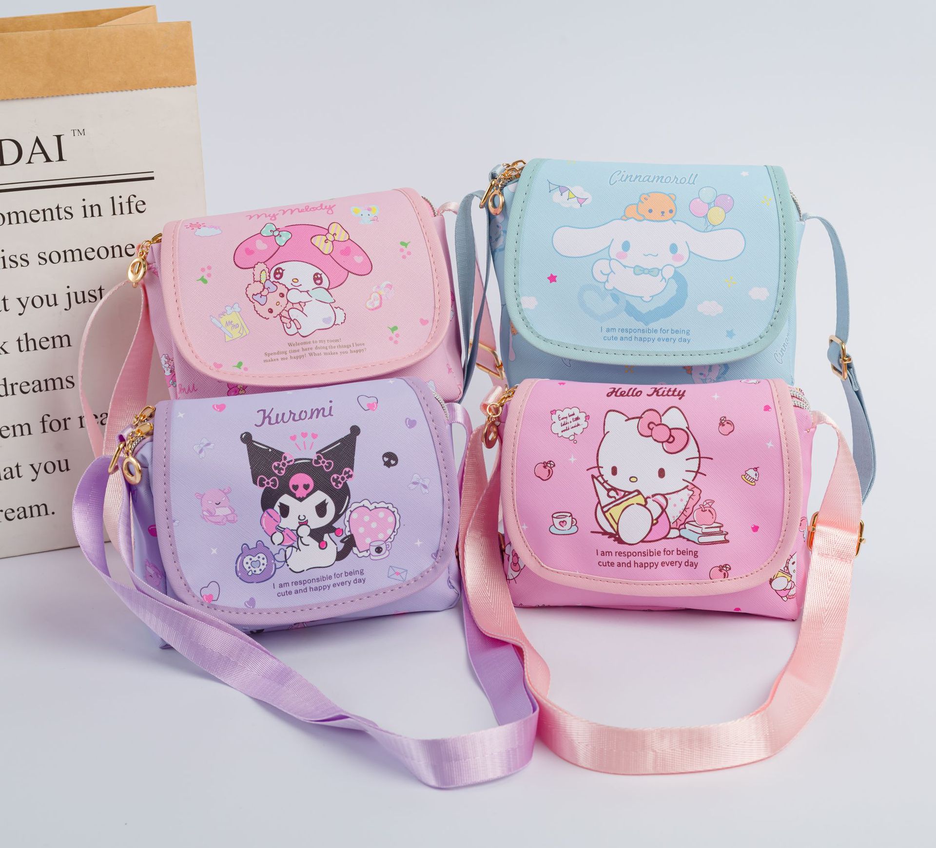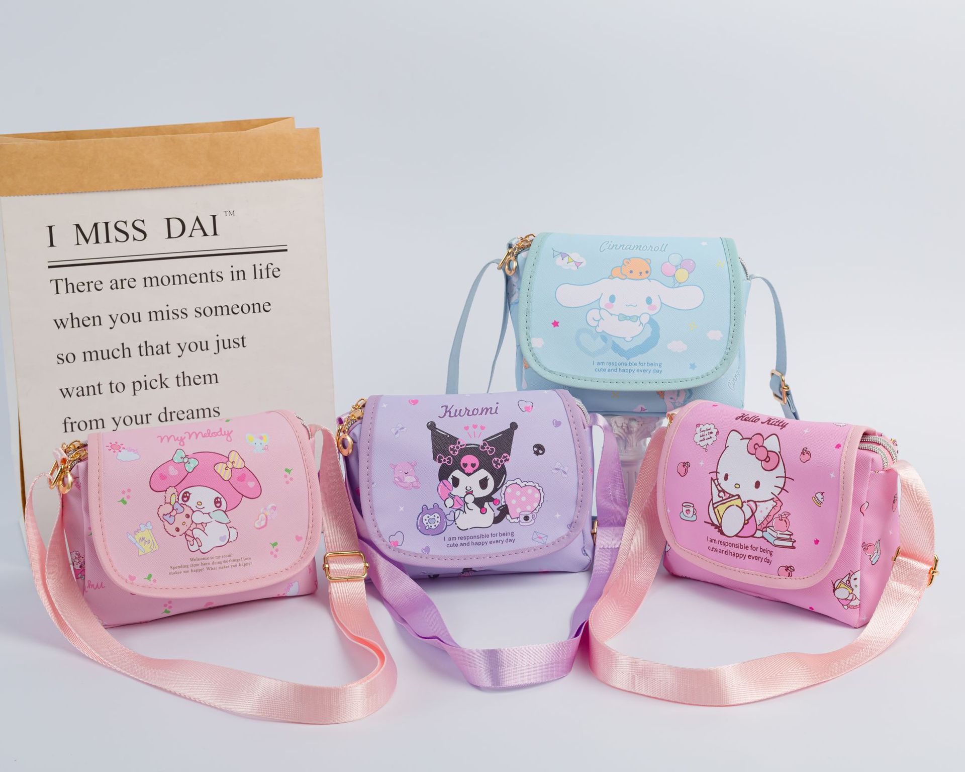 2025 새로운 패션 캐주얼 올 매치 코인 지갑 어린이 남녀 산리오 클랩 오버 지퍼 크로스 바디 숄더 백