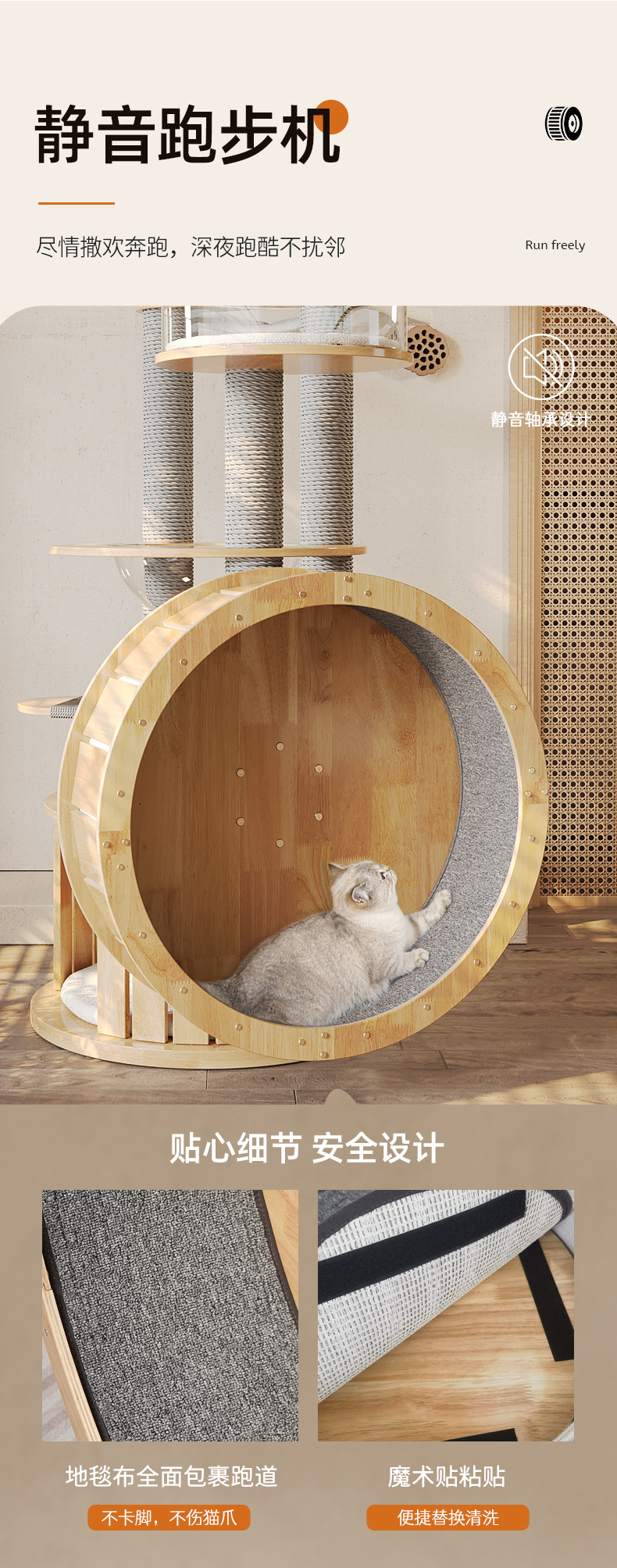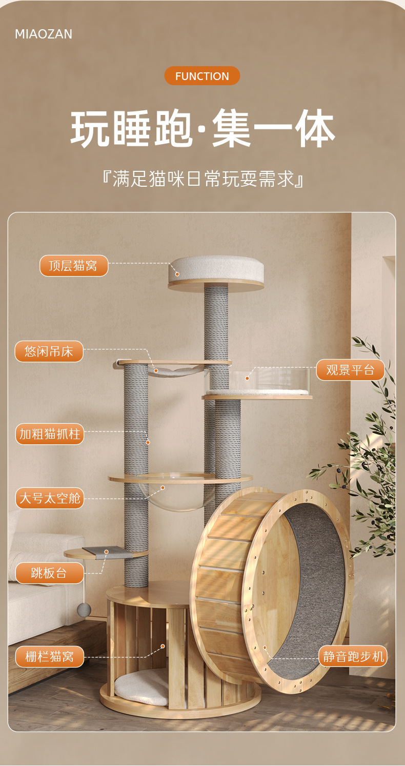 무소음 런닝머신, 고양이 클라이밍 프레임, 원목 고양이 둥지, 일체형 우주 캡슐, 가정용 고급 소형 아파트, 공간을 차지하지 않는 고양이 트리