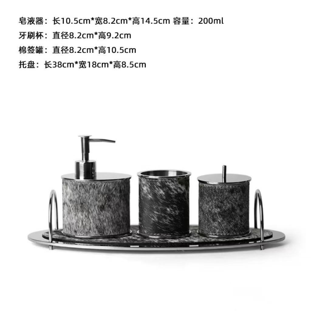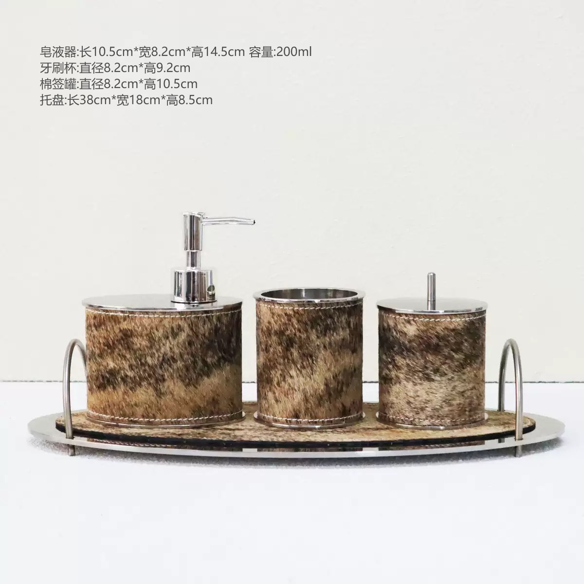현대 빛 럭셔리 간단한 스테인레스 스틸 천연 말 헤어 욕실 조합 하이 엔드 빌라 비누 디스펜서 장식 장식품