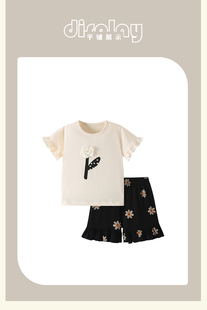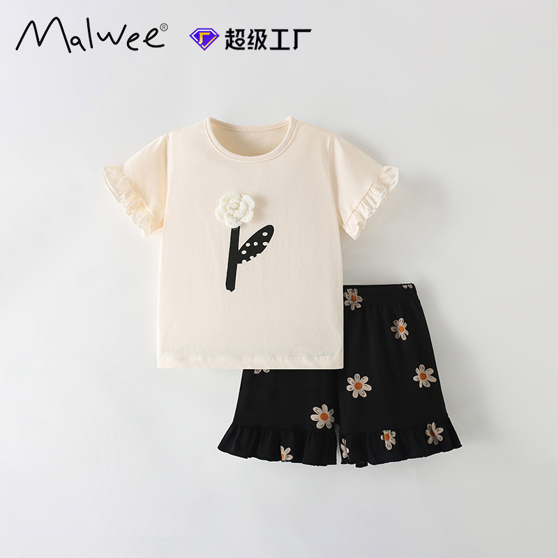 국경 간 malwee 여자 정장 여름 새로운 유럽과 미국 어린이 라운드 넥 티셔츠 반팔 신축성있는 허리 투피스 세트스토어 가기