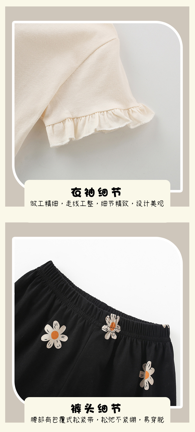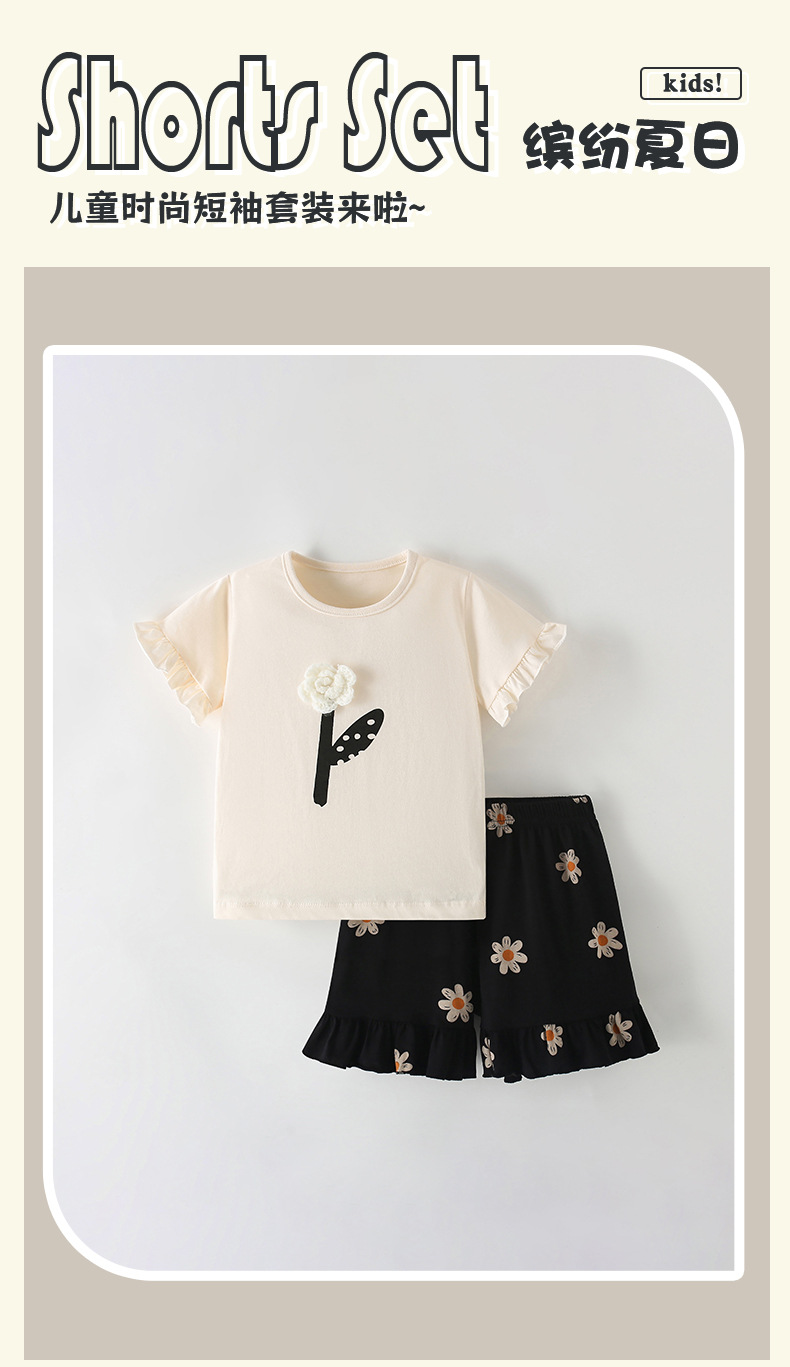 국경 간 malwee 여자 정장 여름 새로운 유럽과 미국 어린이 라운드 넥 티셔츠 반팔 신축성있는 허리 투피스 세트