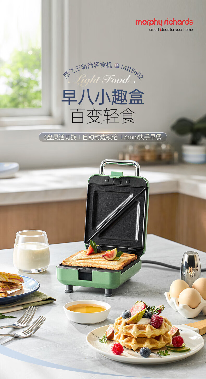 모페이 샌드위치 메이커 MR8602 아침식사 메이커 빵 굽는 기계 전기 팬케이크 메이커 간편식 메이커 토스트 메이커 (ZN)스토어 가기