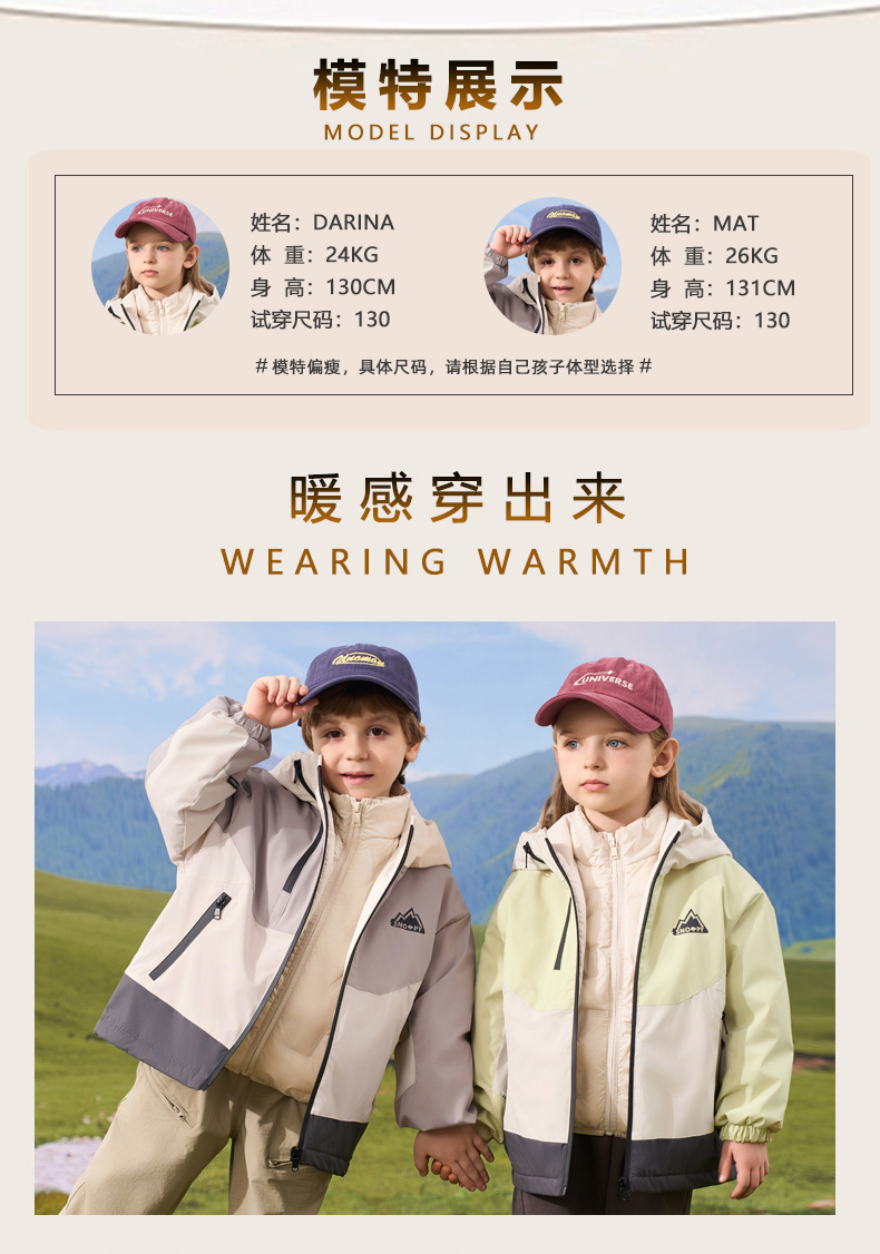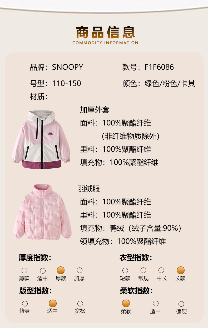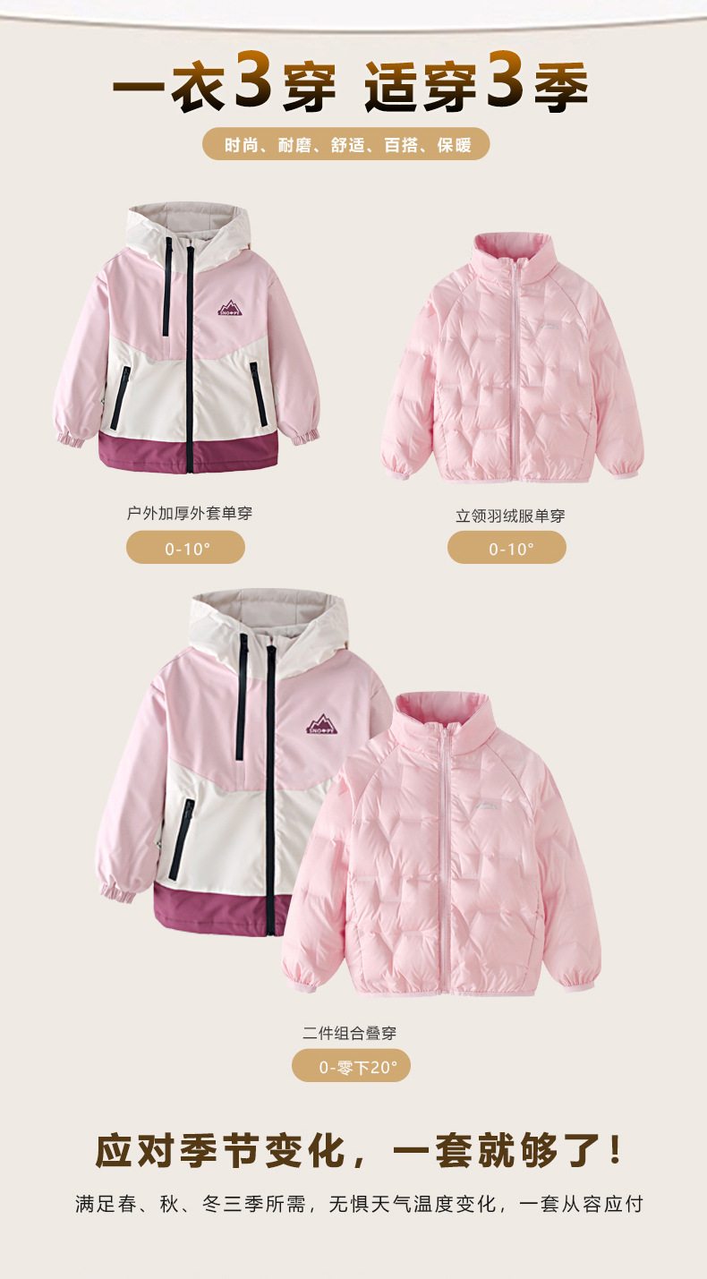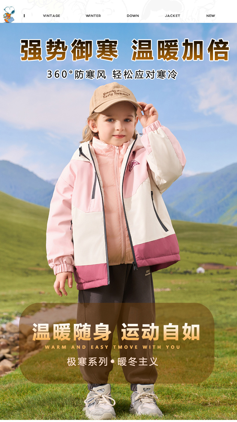 스누피 2024 신형 아동용 아웃도어 재킷 3-in-1 포레스트 시리즈 90 화이트 덕 다운 재킷