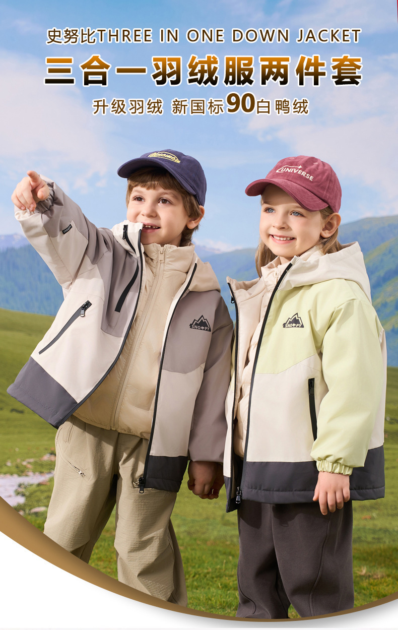 스누피 2024 신형 아동용 아웃도어 재킷 3-in-1 포레스트 시리즈 90 화이트 덕 다운 재킷스토어 가기
