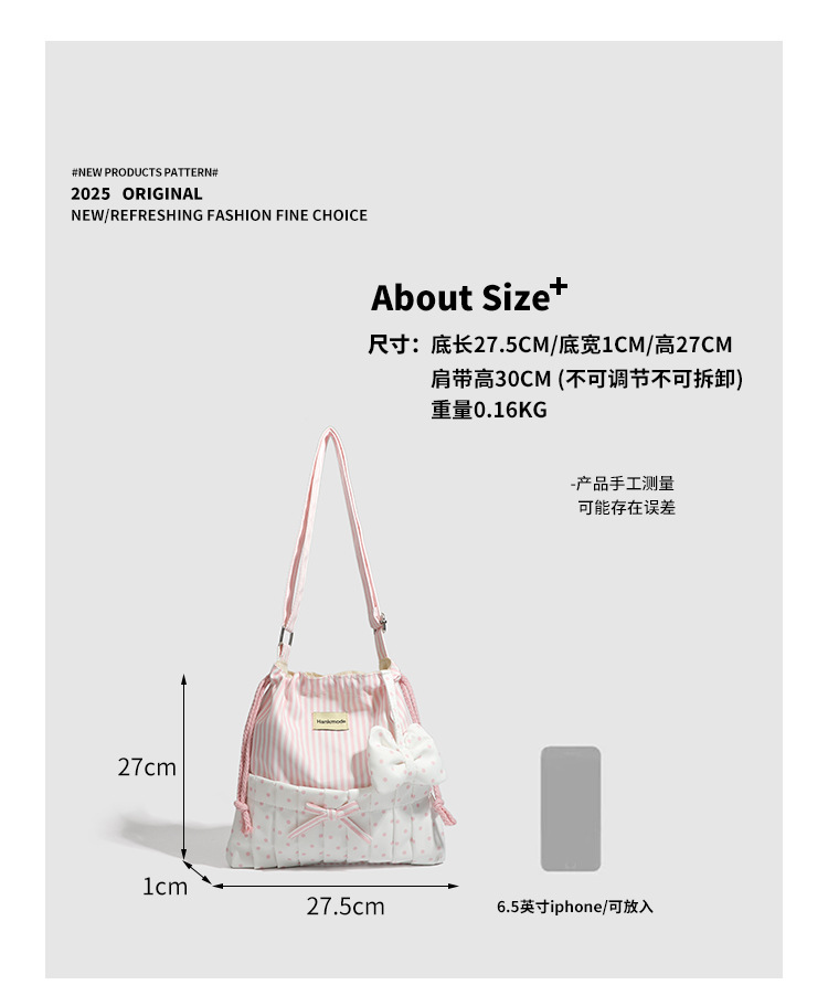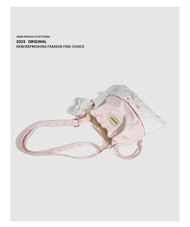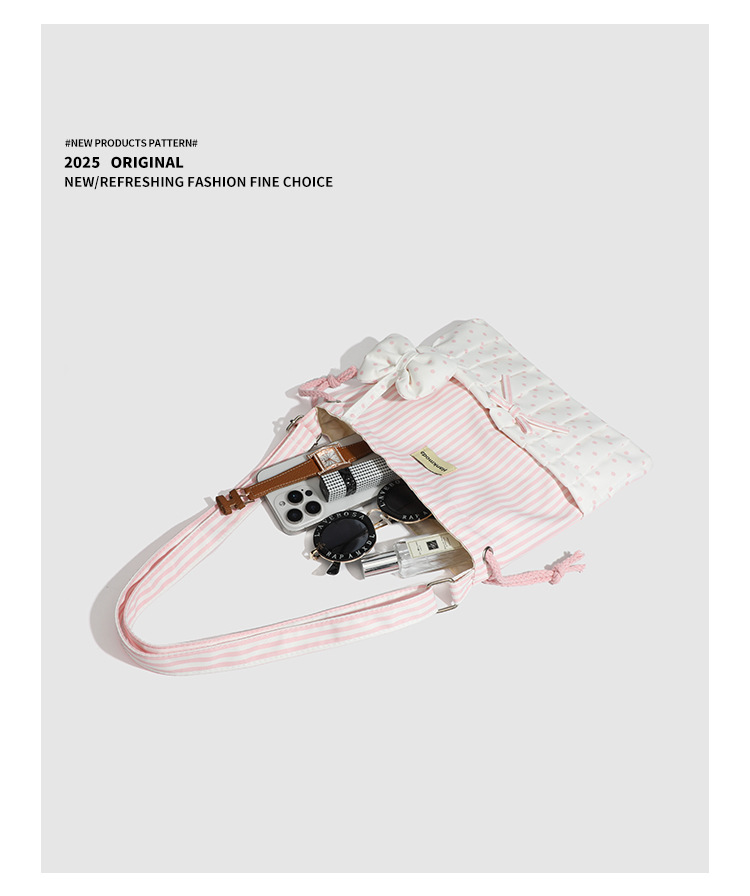 달콤하고 높은 가치의 활 줄무늬 어깨 크로스 바디 백 여성 틈새 패션 올 매치 디자인 달콤한 소녀 토트 백
