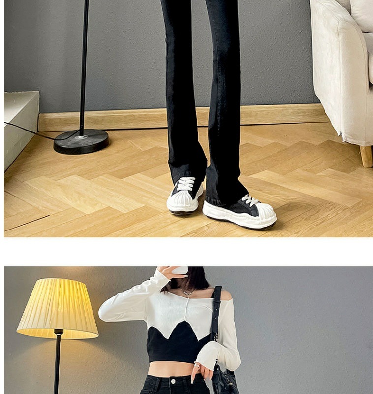핫한 여성을 위한 가을 겨울 화이트 마이크로 플레어 청바지, 하이웨이스트, 슬리밍, 키가 작은 9부, 하이힐, 롱팬츠스토어 가기