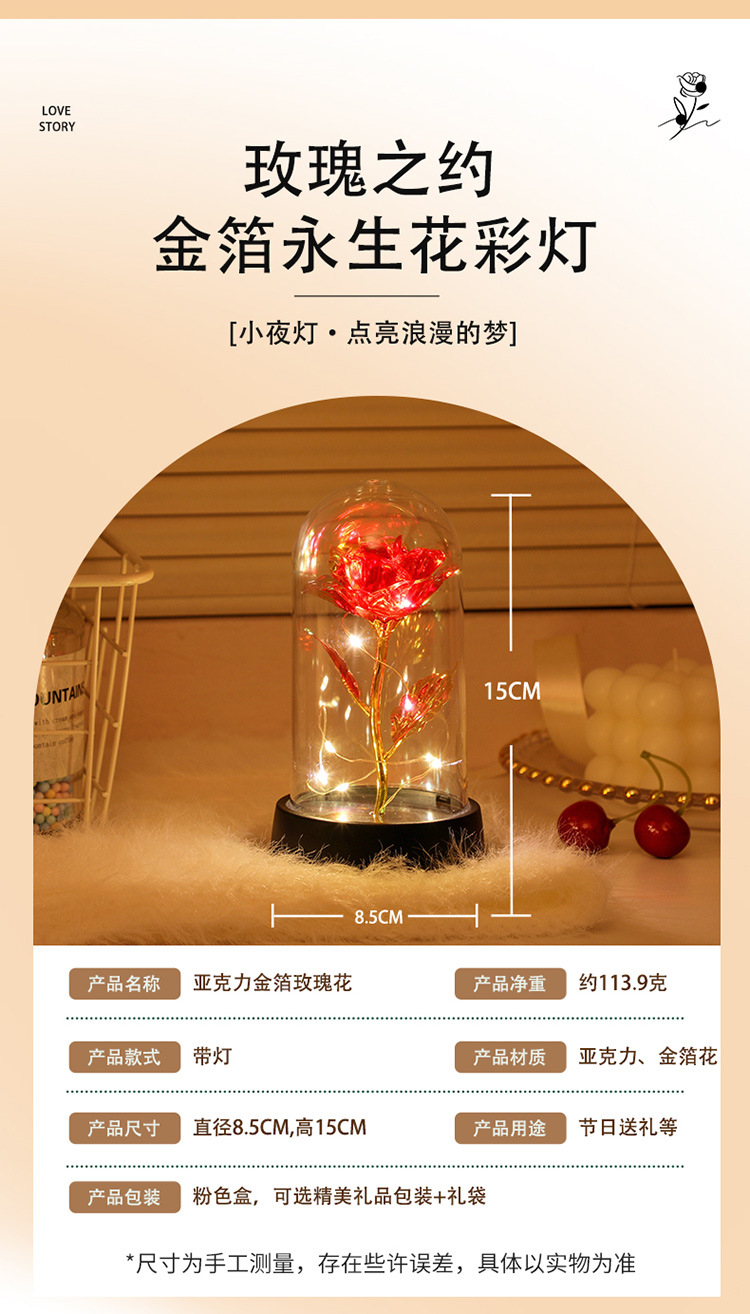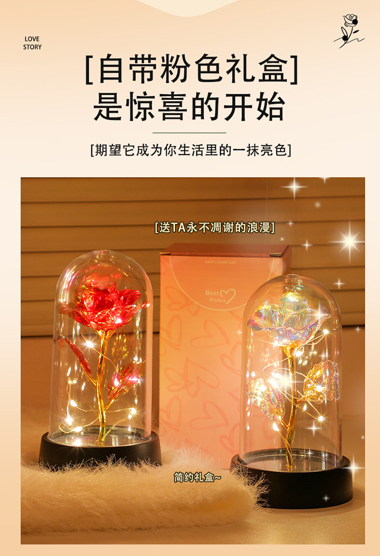 로즈 완성 빛나는 나이트 라이트 창조적 인 생일 선물 소녀 발렌타인 데이 데스크탑 장식 분위기 램프 도매