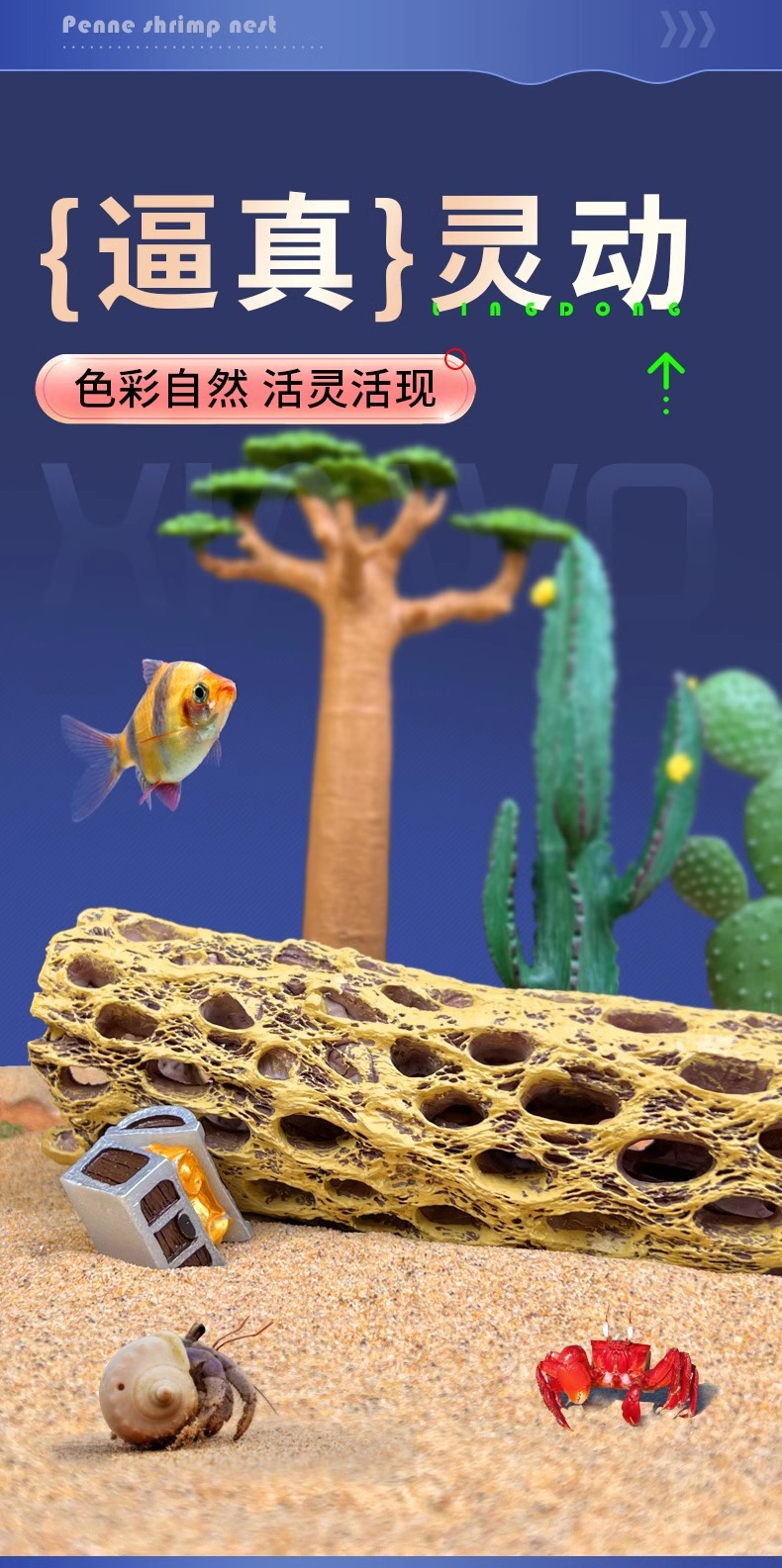 수족관 수조 장식품, 로우우드 새우집, 피난처, 물고기와 새우의 낳는 둥지, 다공성 물고기 동굴, 수조 조경 장식