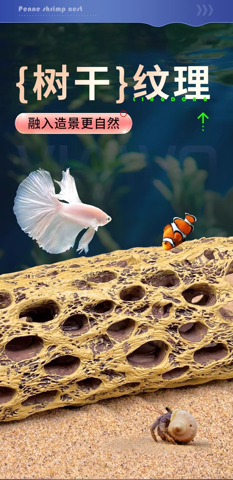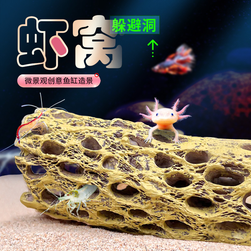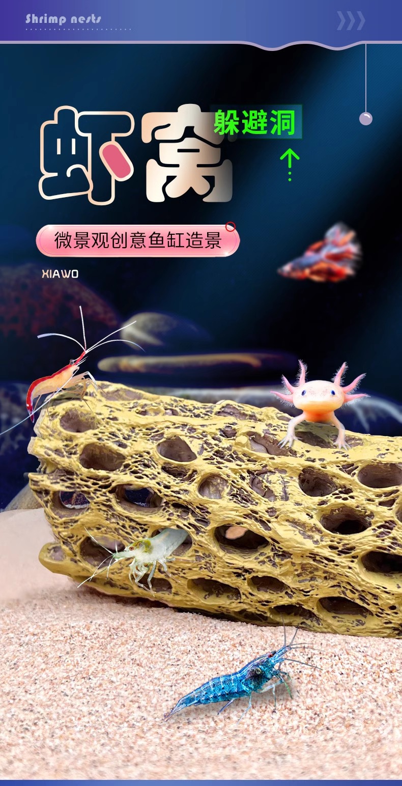 수족관 수조 장식품, 로우우드 새우집, 피난처, 물고기와 새우의 낳는 둥지, 다공성 물고기 동굴, 수조 조경 장식스토어 가기