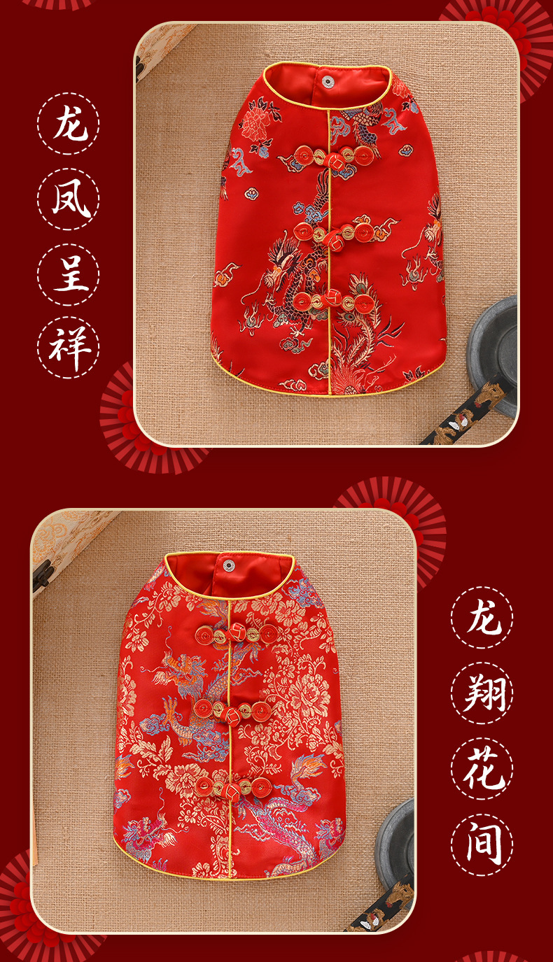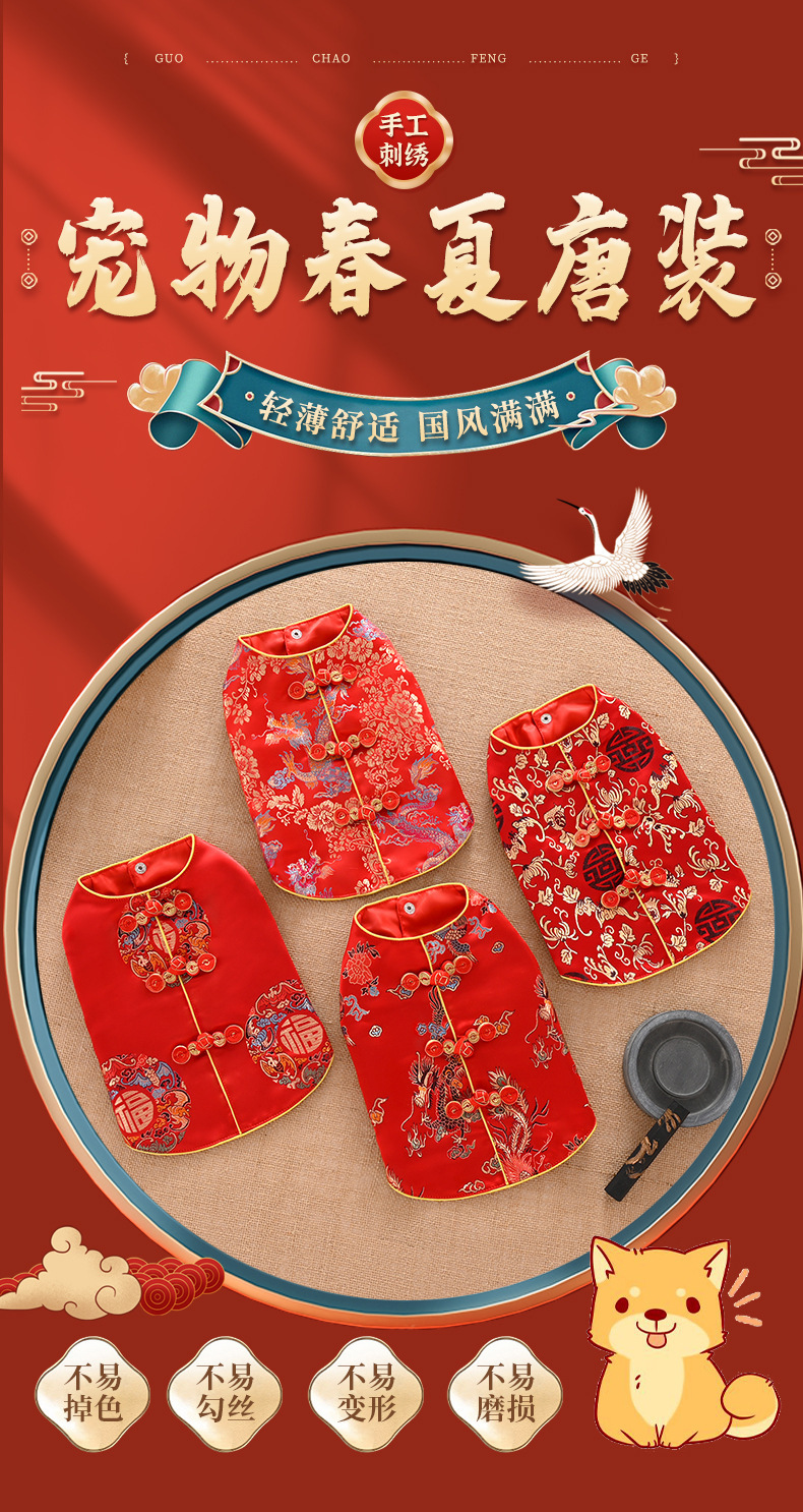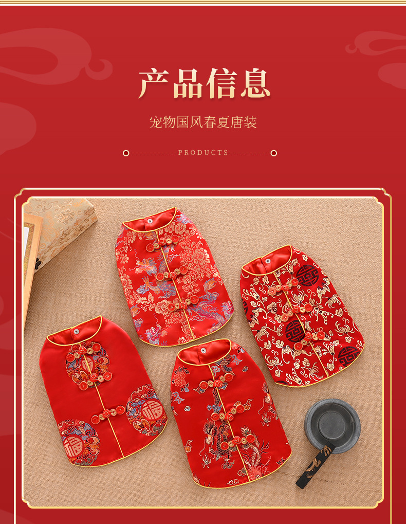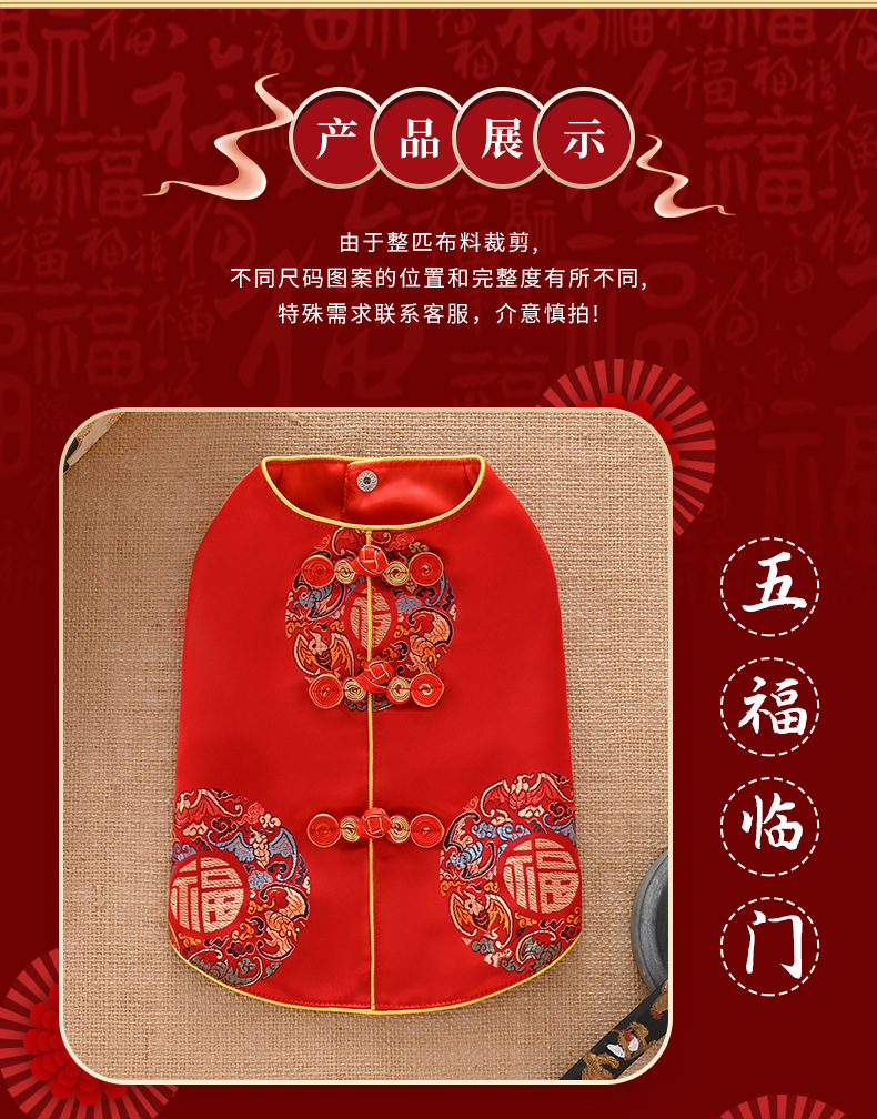 강아지옷, 테디비숑, 포메라니안, 새해맞이 웨딩드레스, 고양이 결혼식, 축제 빨간색 애완동물 당나라 정장, 새해맞이스토어 가기