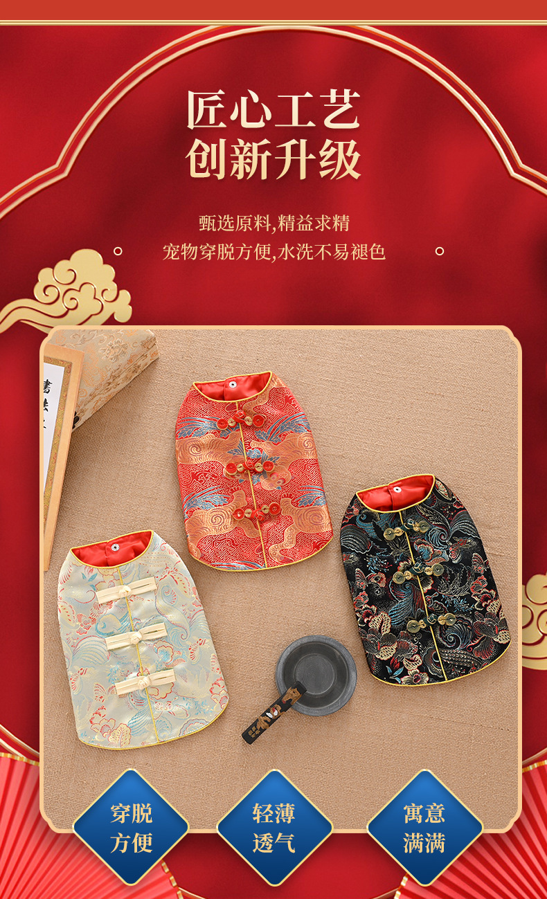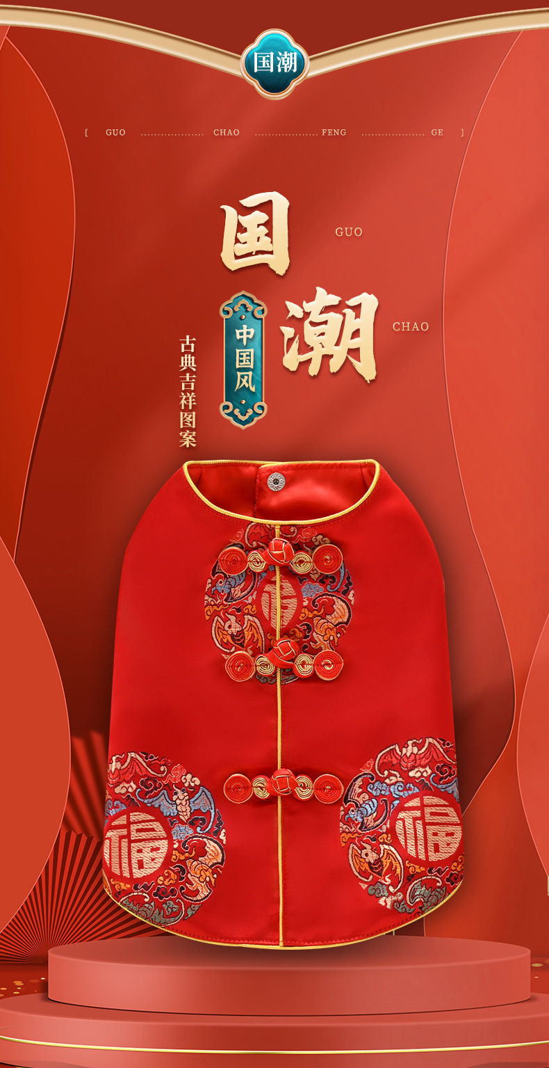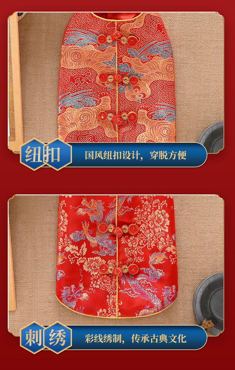 강아지옷, 테디비숑, 포메라니안, 새해맞이 웨딩드레스, 고양이 결혼식, 축제 빨간색 애완동물 당나라 정장, 새해맞이스토어 가기