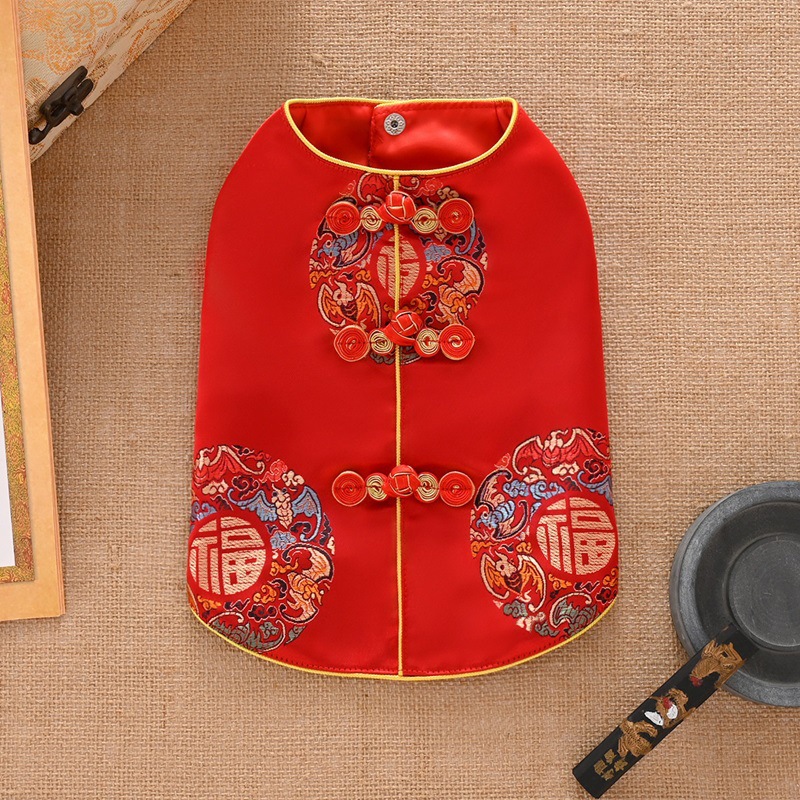 강아지옷, 테디비숑, 포메라니안, 새해맞이 웨딩드레스, 고양이 결혼식, 축제 빨간색 애완동물 당나라 정장, 새해맞이