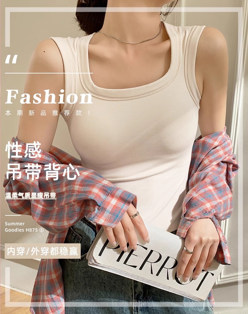 살구색 카미솔 여성의 봄과 여름 2025 새로운 가슴 패드 순수한 욕망 스타일 아름다운 뒷브래지어 원피스 아우터웨어 탑스토어 가기