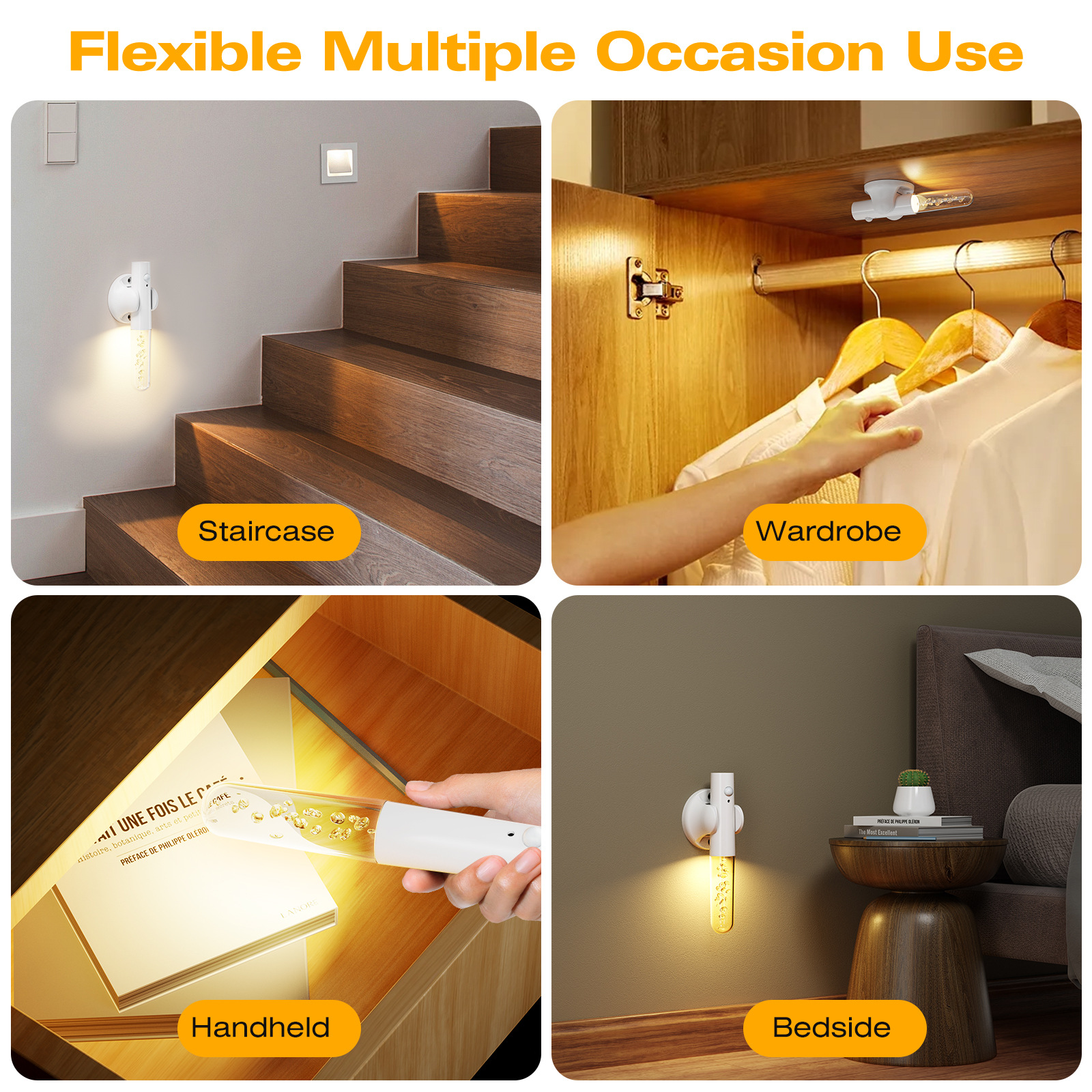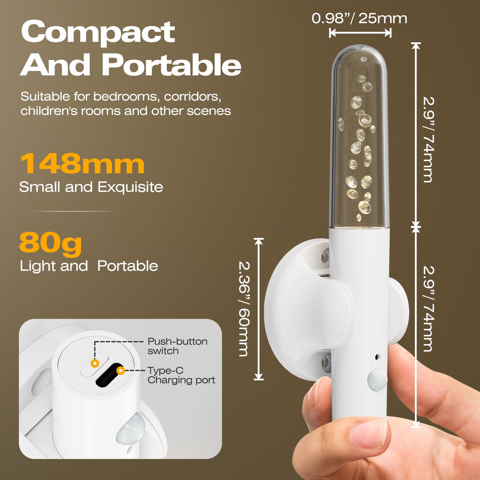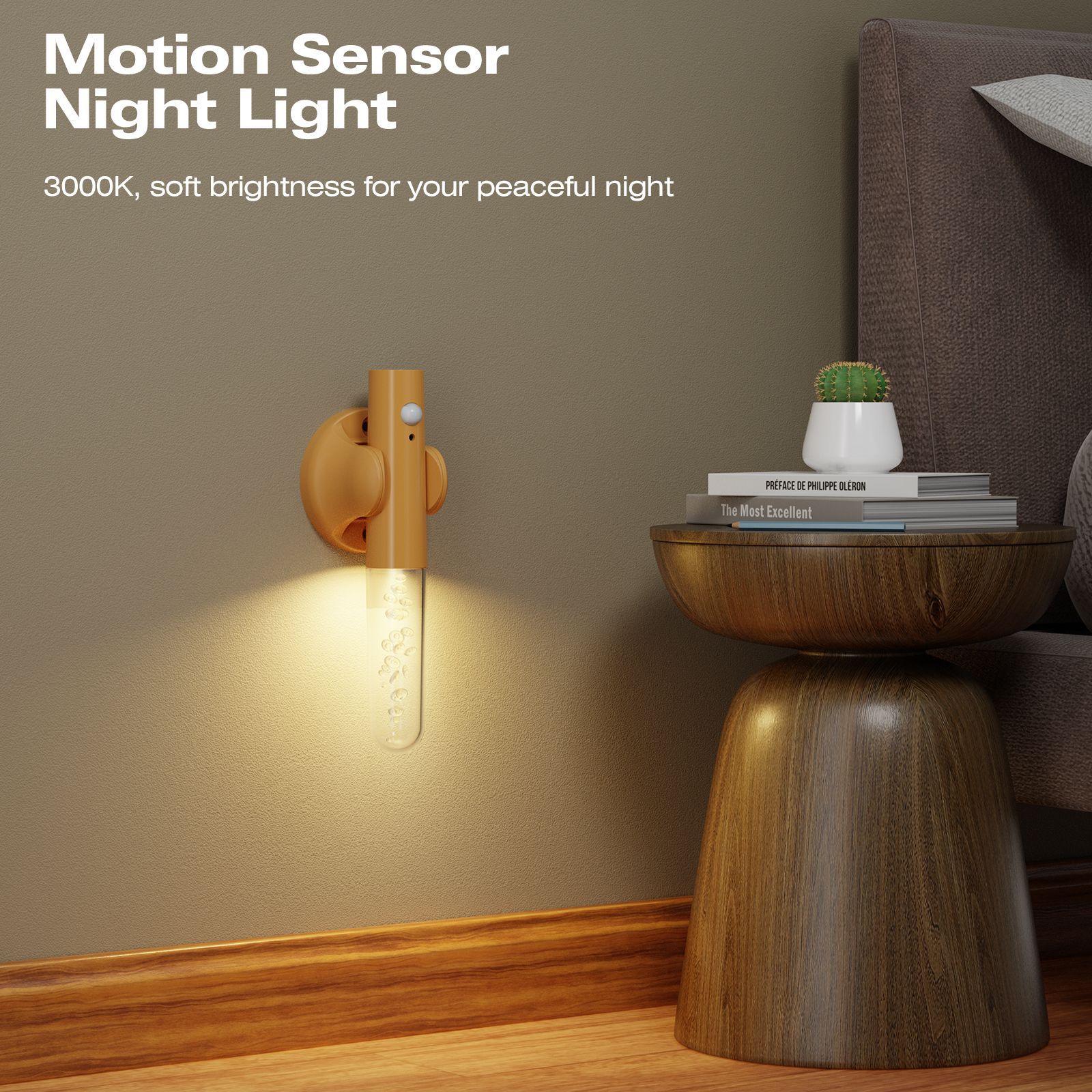 스마트 LED 휴대용 복도 램프 나무 벽 램프 침실 계단 센서 야간 조명 충전식 무선 야간 조명
