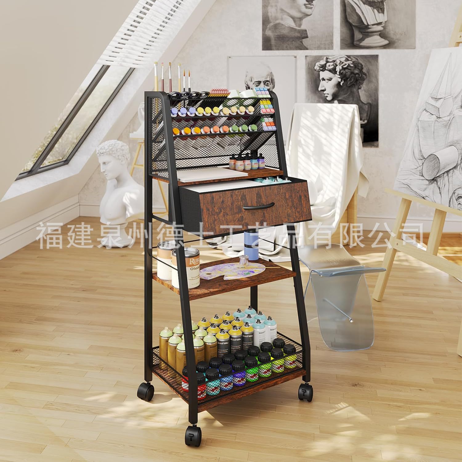 서랍이 있는 국경 간 맞춤형 3층 금속 카트 다기능 보관 및 정리 랙 모바일 스탠딩 보관 랙스토어 가기
