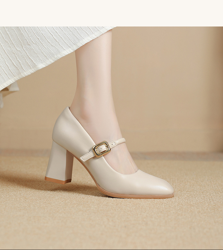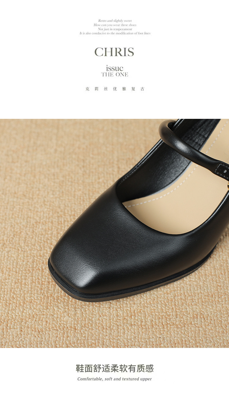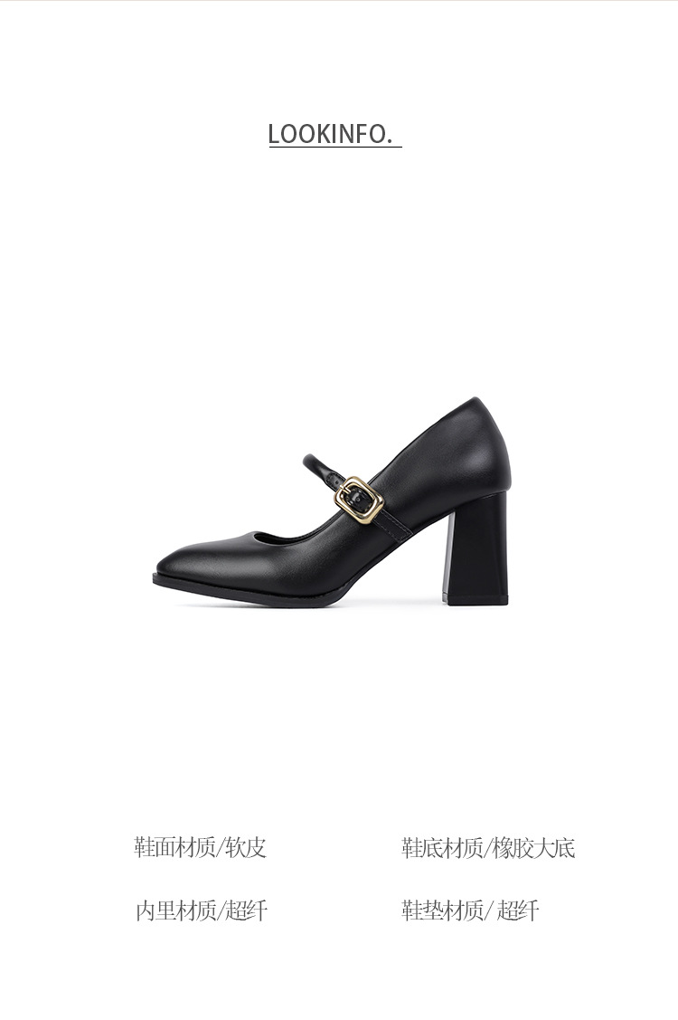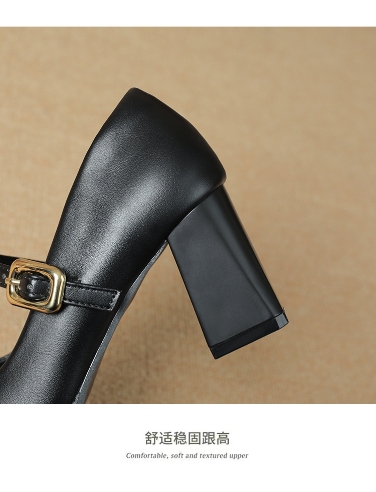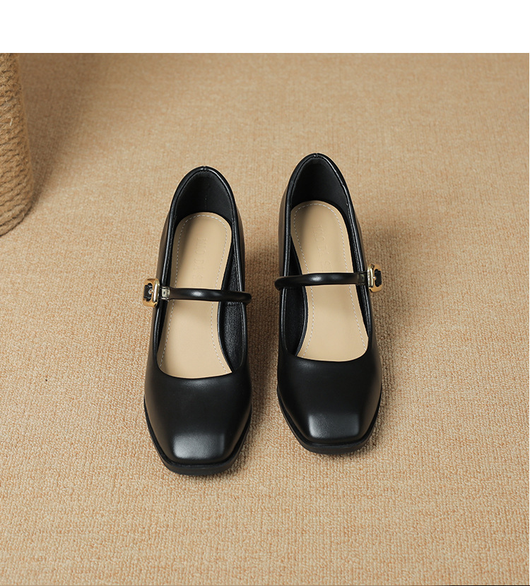 스팟 소사이즈 313233 사이즈 두꺼운 굽 7CM 스퀘어 토 버클 심플 기질 통근화 부드러운 가죽 여성화