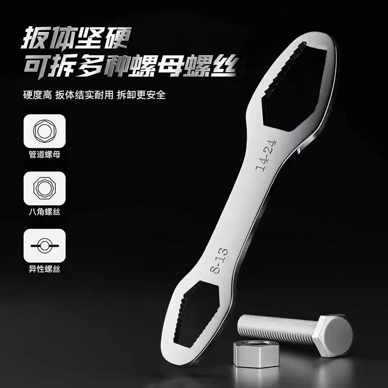 메이플 브랜치 렌치, 자가 조임식, 다용도, 이중 헤드, 8-24 사이즈, 수공구, 나무 손잡이가 있는 광작용 렌치