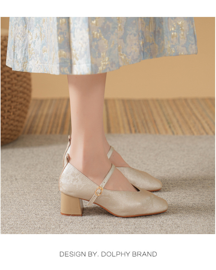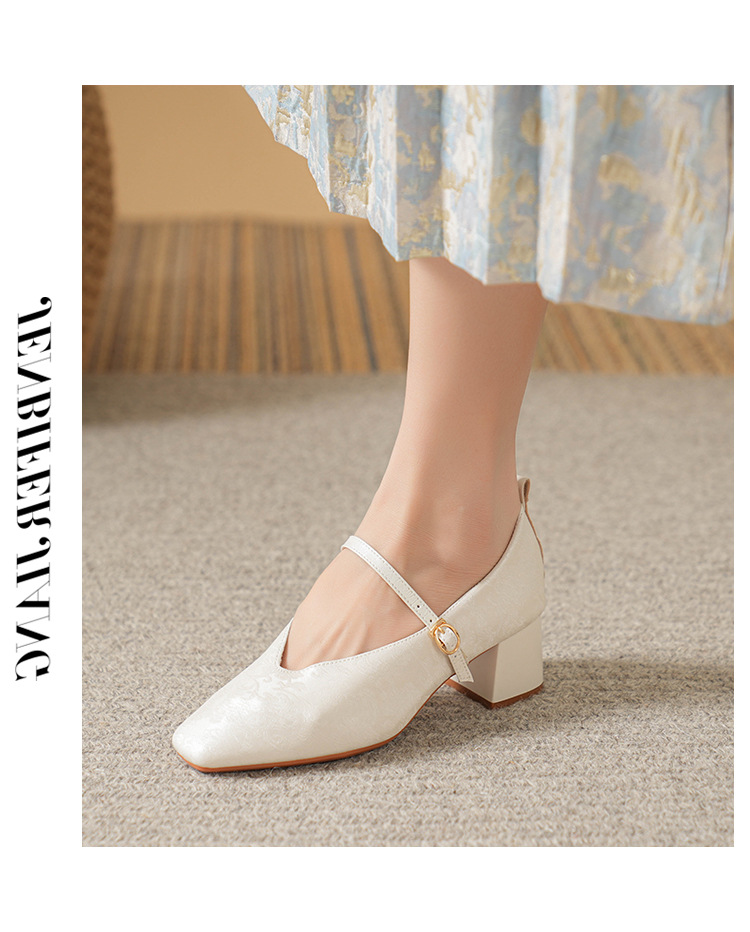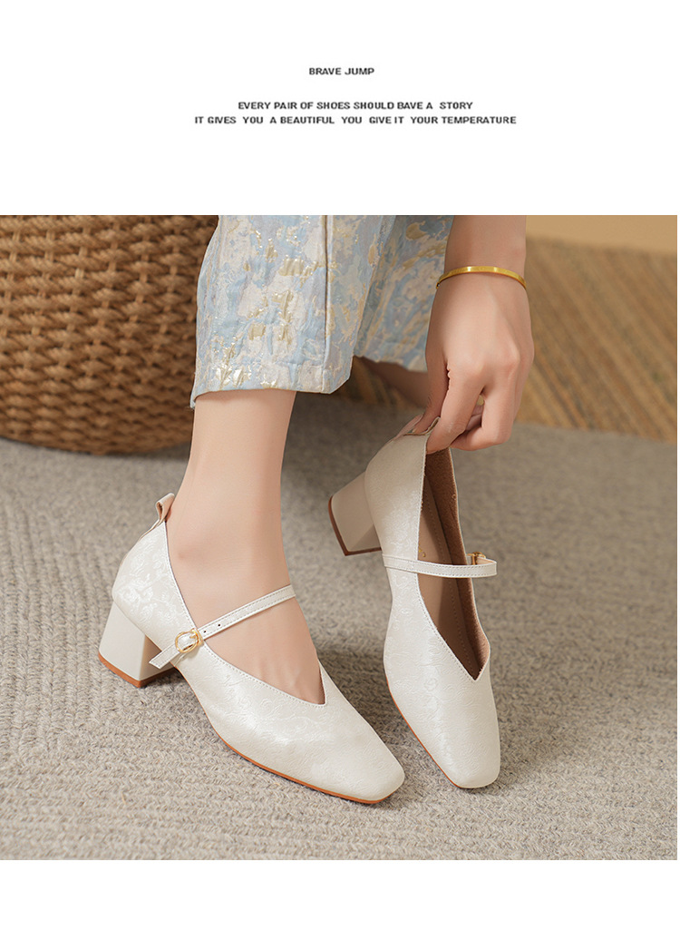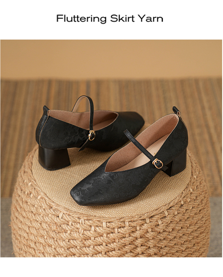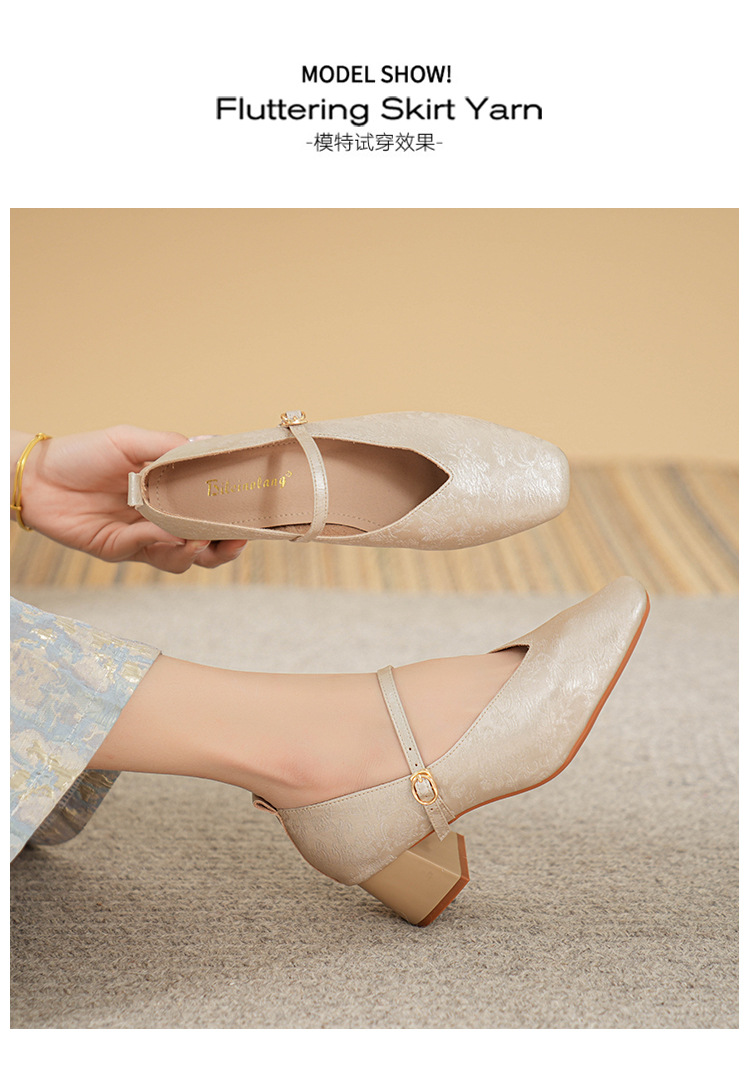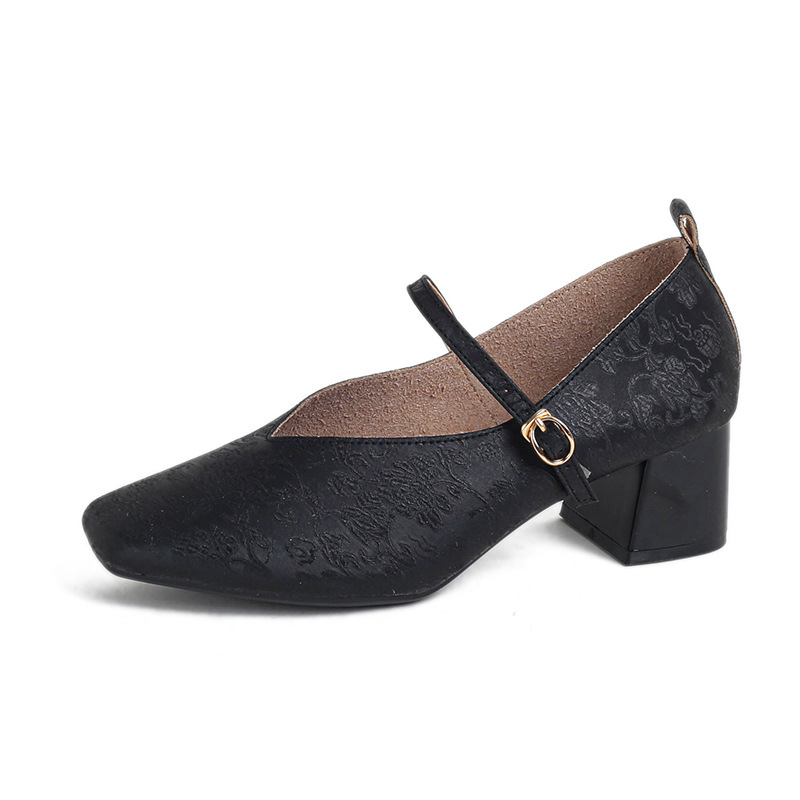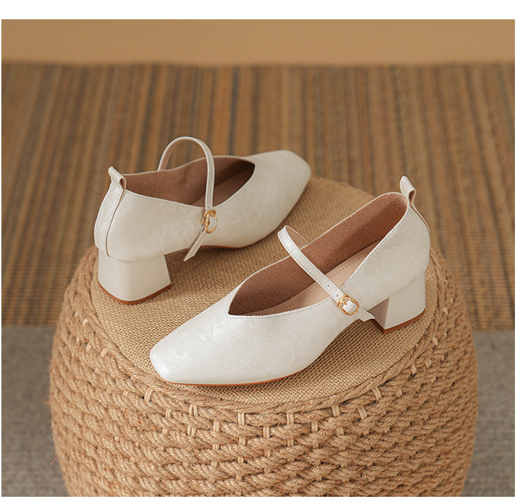 스퀘어 헤드 소프트 가죽 작업화 여성 신발 소프트 솔 롱 스탠딩 피곤하지 않은 전문 편안한 하이힐 두꺼운 힐 신발은 힐에서 떨어지지 않습니다.스토어 가기
