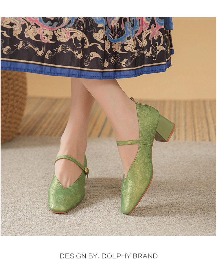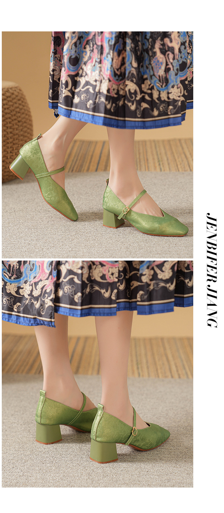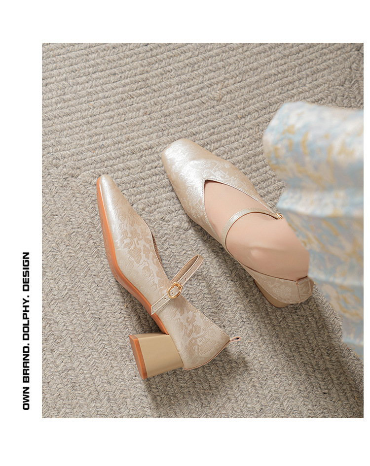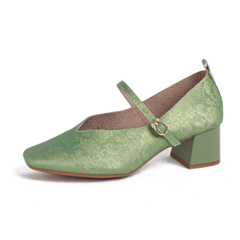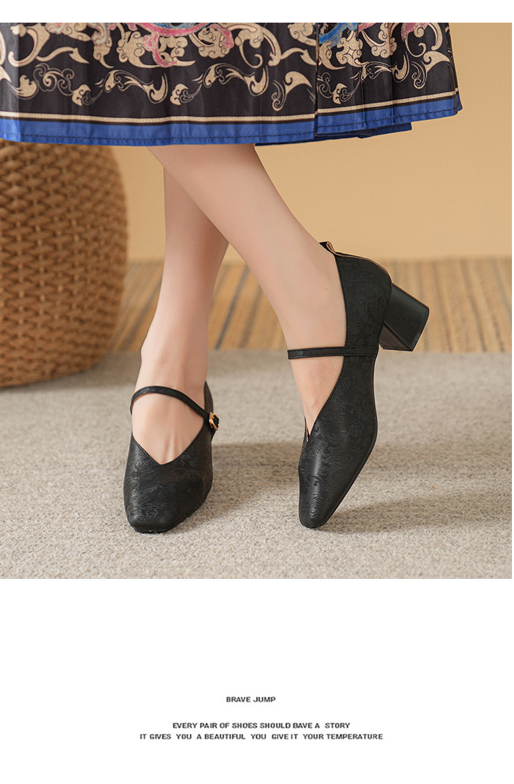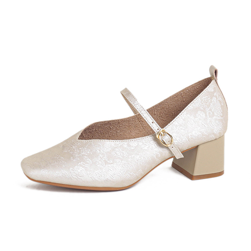 스퀘어 헤드 소프트 가죽 작업화 여성 신발 소프트 솔 롱 스탠딩 피곤하지 않은 전문 편안한 하이힐 두꺼운 힐 신발은 힐에서 떨어지지 않습니다.스토어 가기