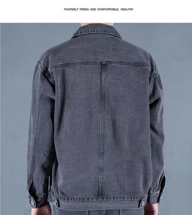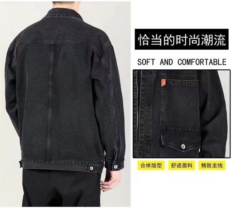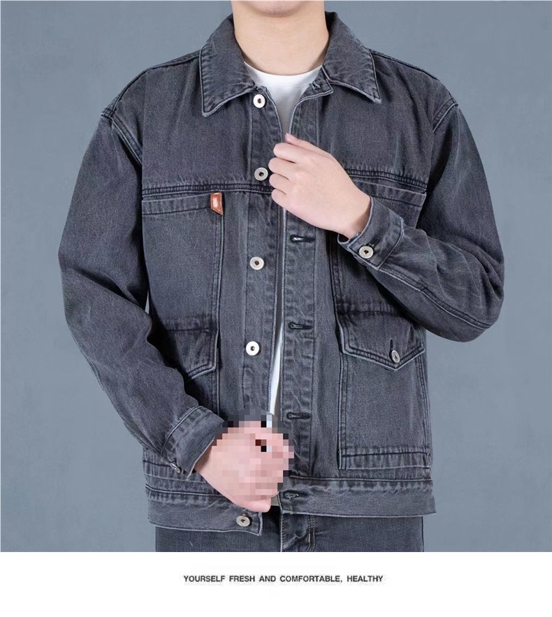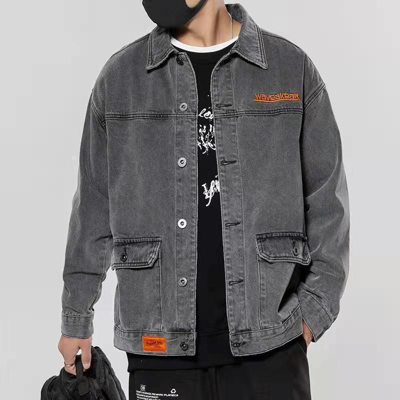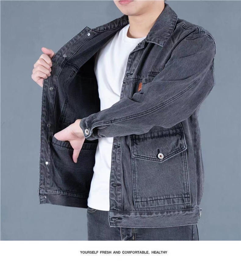 연기 그레이 빈티지 데님 재킷 남자 2025 새로운 스타일 심플 패셔너블 루즈 올 매치 작업복 데님 재킷스토어 가기