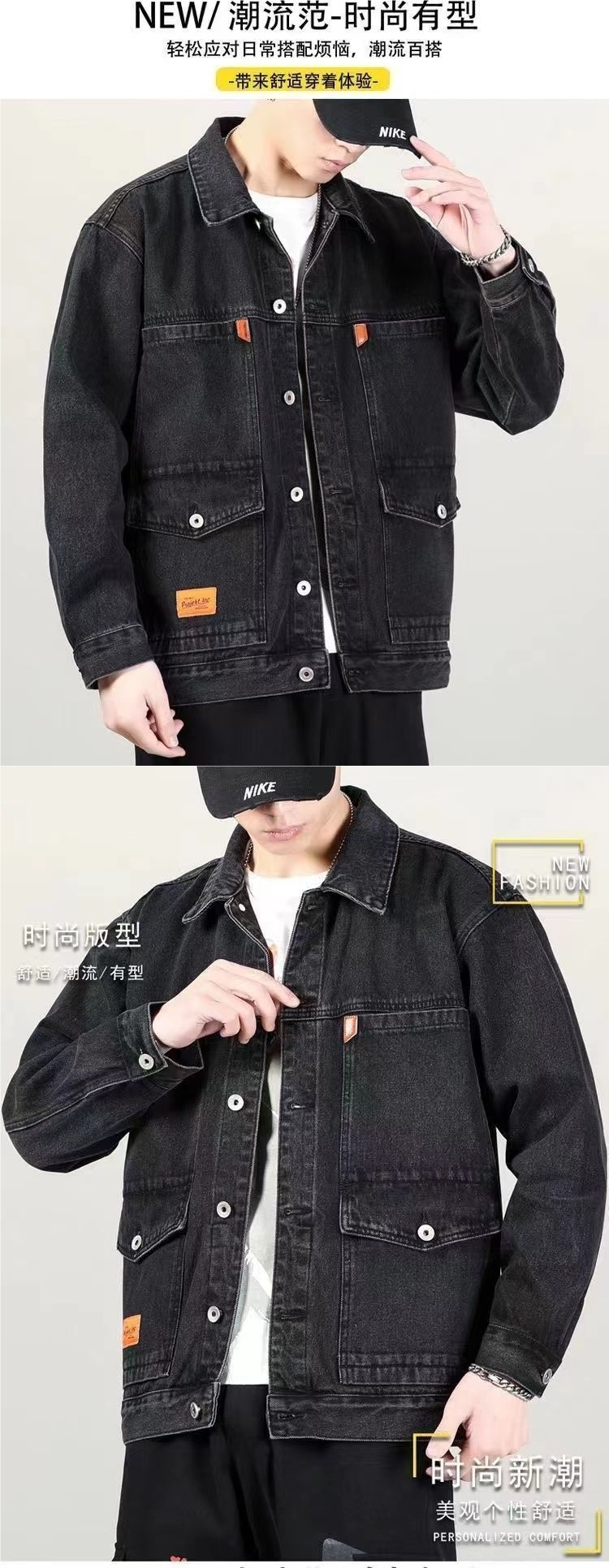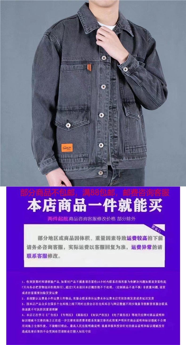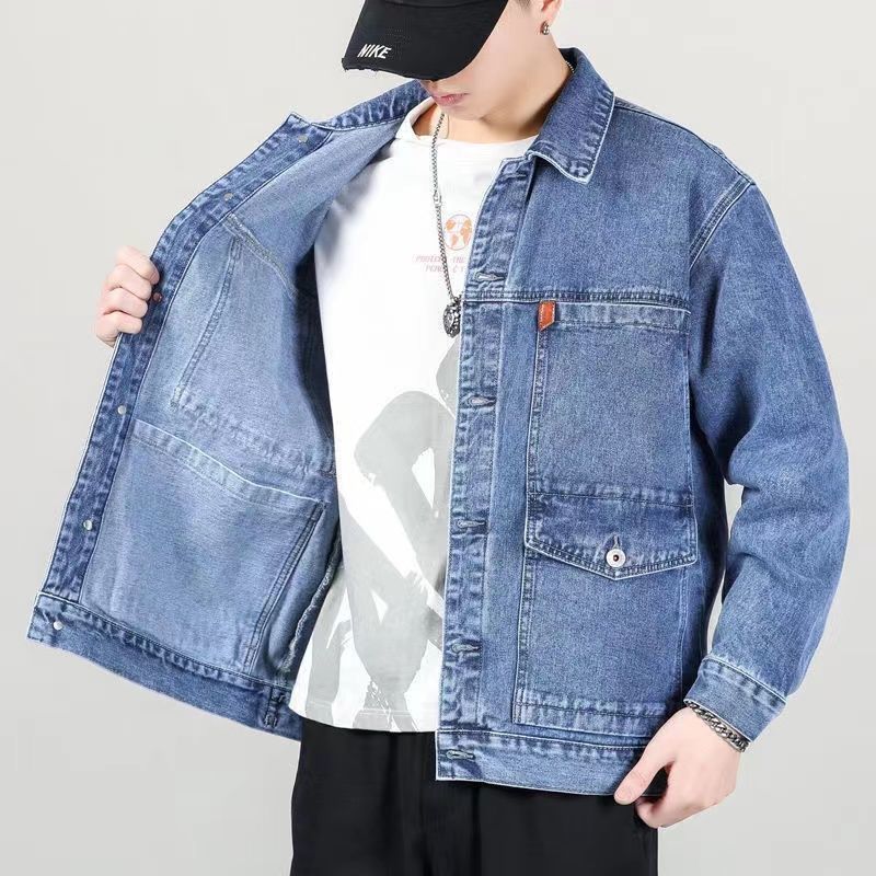 연기 그레이 빈티지 데님 재킷 남자 2025 새로운 스타일 심플 패셔너블 루즈 올 매치 작업복 데님 재킷스토어 가기
