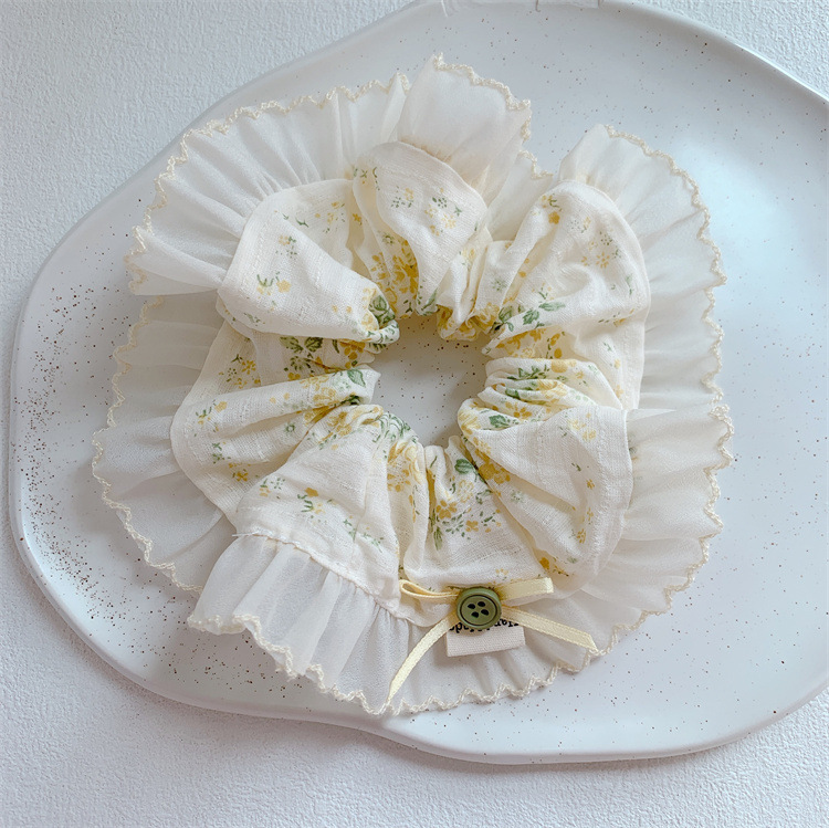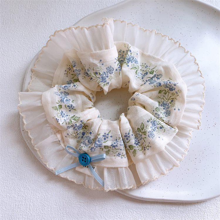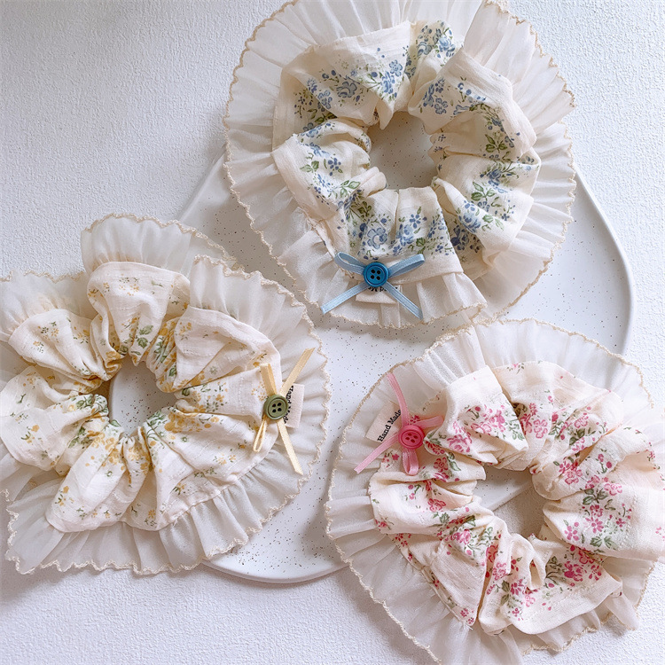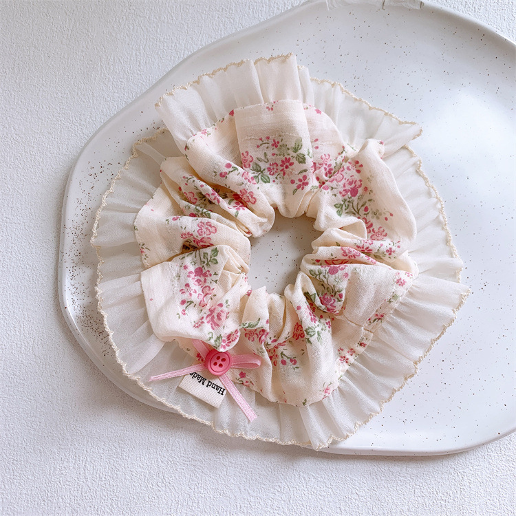 달콤한 활 버튼 원단 꽃 큰 장 머리 반지 여성의 신선한 목가적 인 스타일 마루초 머리 밧줄 말굽 머리 로프스토어 가기