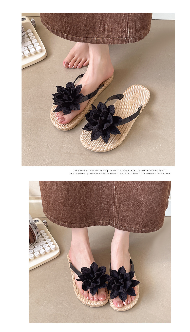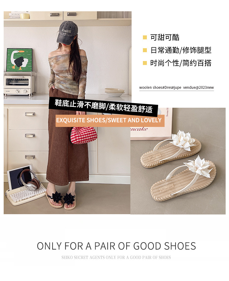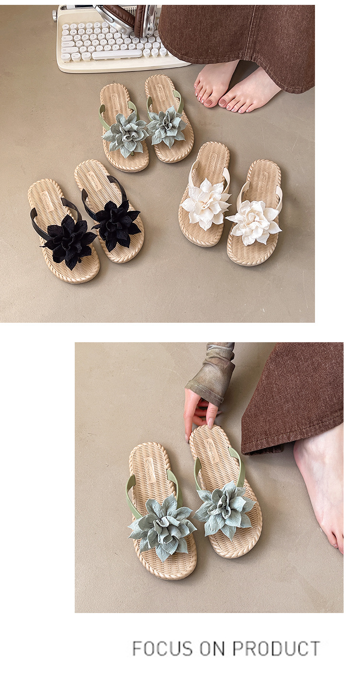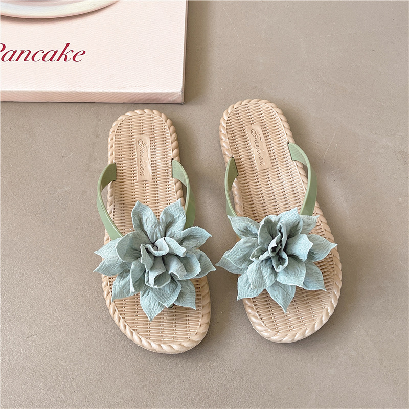 여름 새 스타일 달콤한 요정 스타일 다목적 해변 휴가 미끄럼 방지 부드러운 바닥 비치 슬리퍼 여성을위한 꽃 슬리퍼
