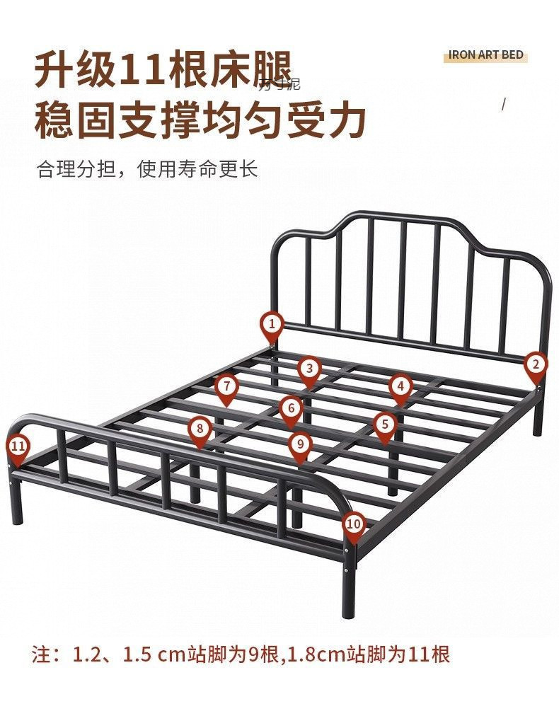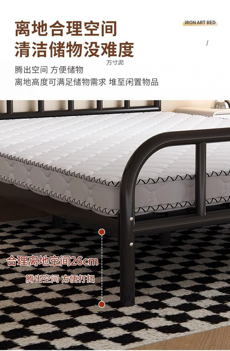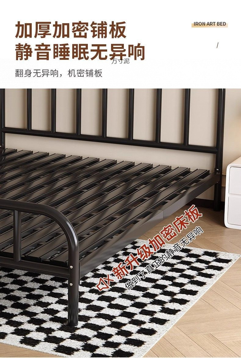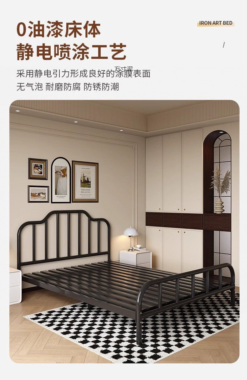 2025 철제 침대, 두꺼운 침대 프레임, 심플하고 모던한 가정용 침실용 더블 침대, 해외 직수입 전기도금 공정 수납형스토어 가기