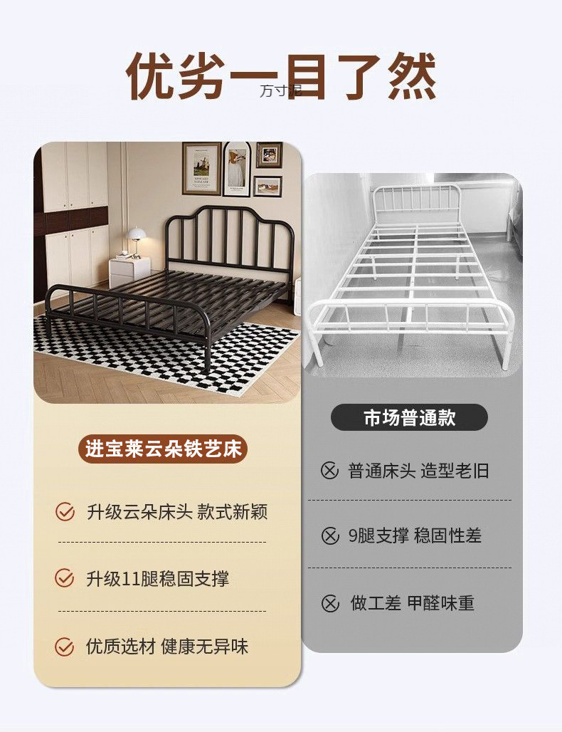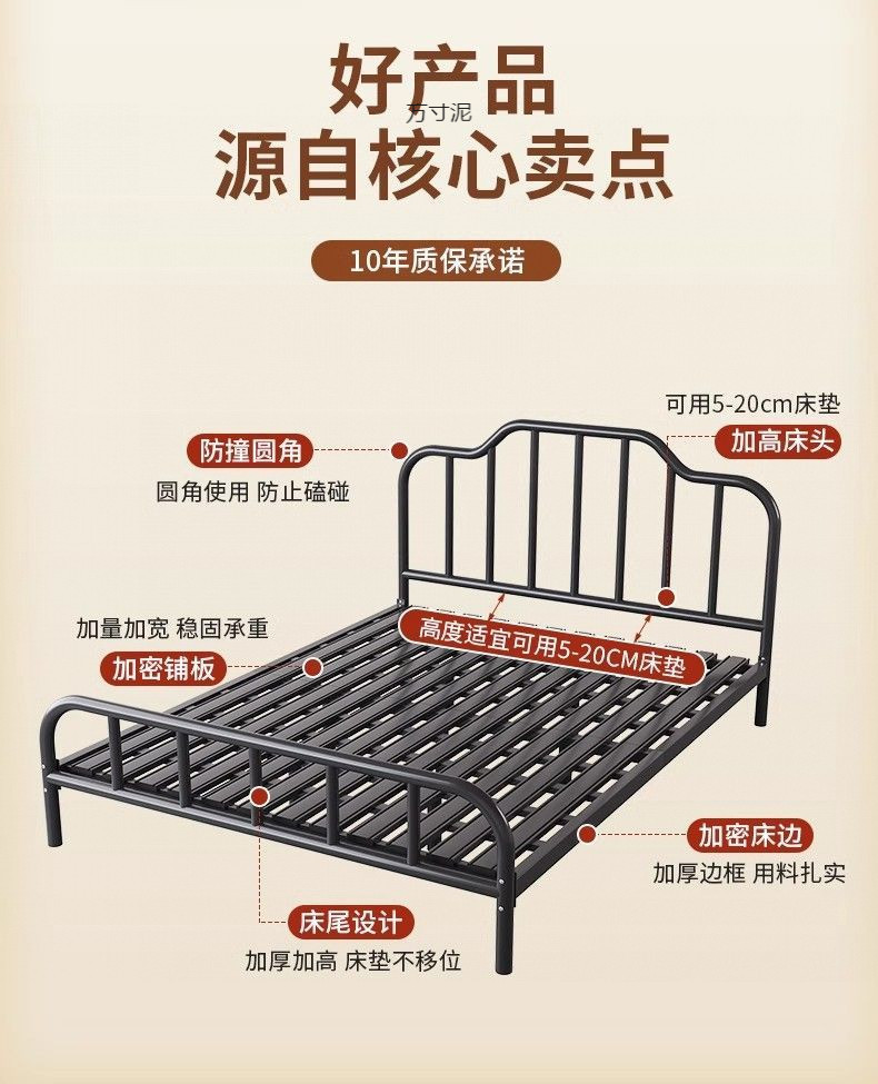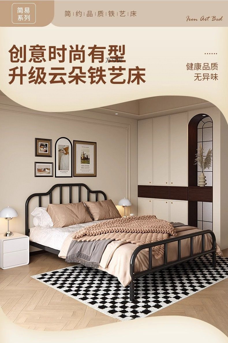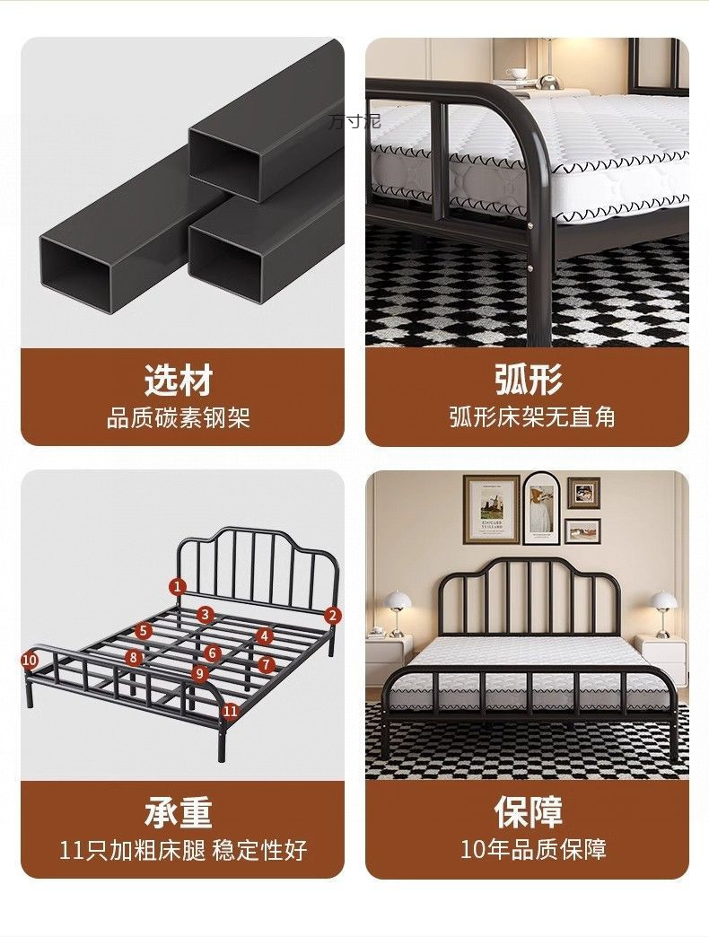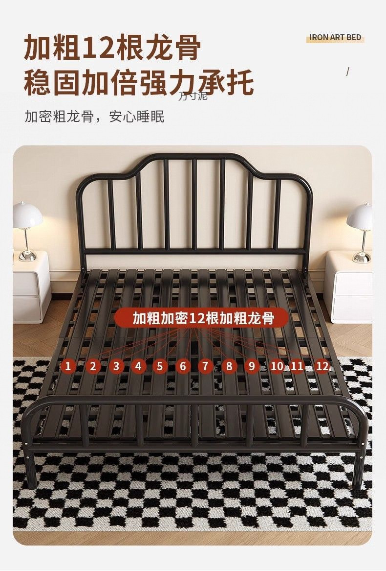 2025 철제 침대, 두꺼운 침대 프레임, 심플하고 모던한 가정용 침실용 더블 침대, 해외 직수입 전기도금 공정 수납형스토어 가기