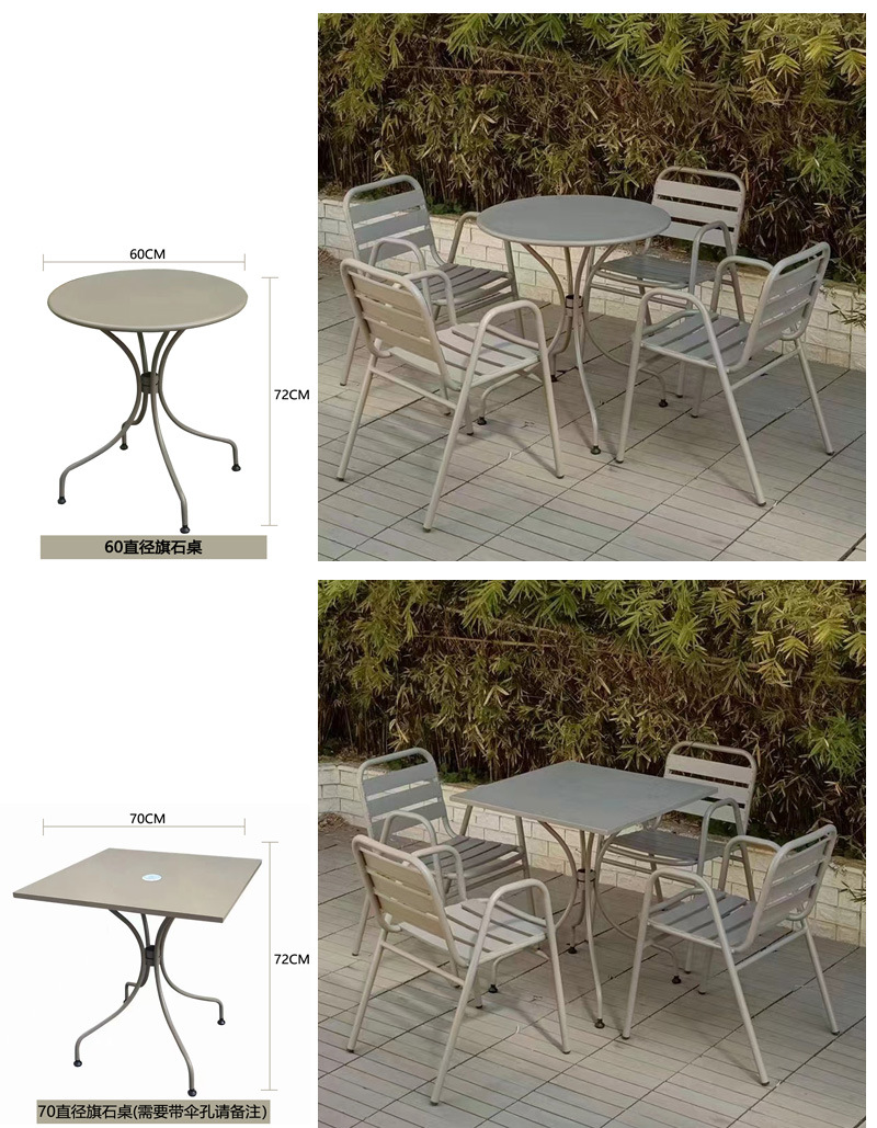 야외 레저 다이닝 테이블 탄소 스틸 작은 라운드 테이블 스퀘어 테이블 우유 차 가게 야외 발코니 테라스 테라스 가든 단철 테이블스토어 가기