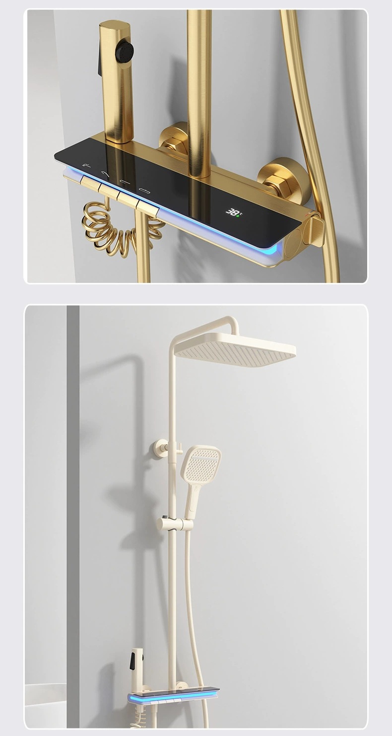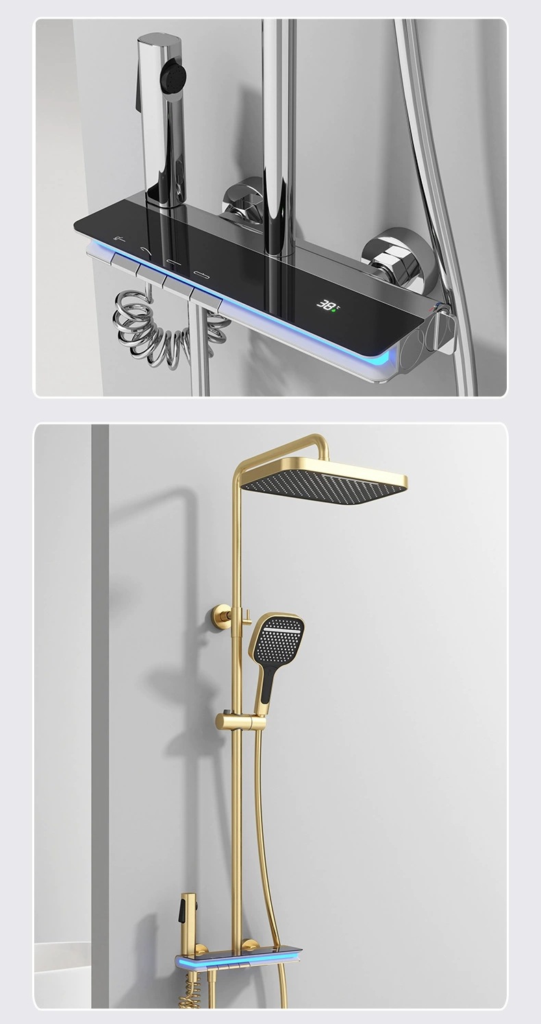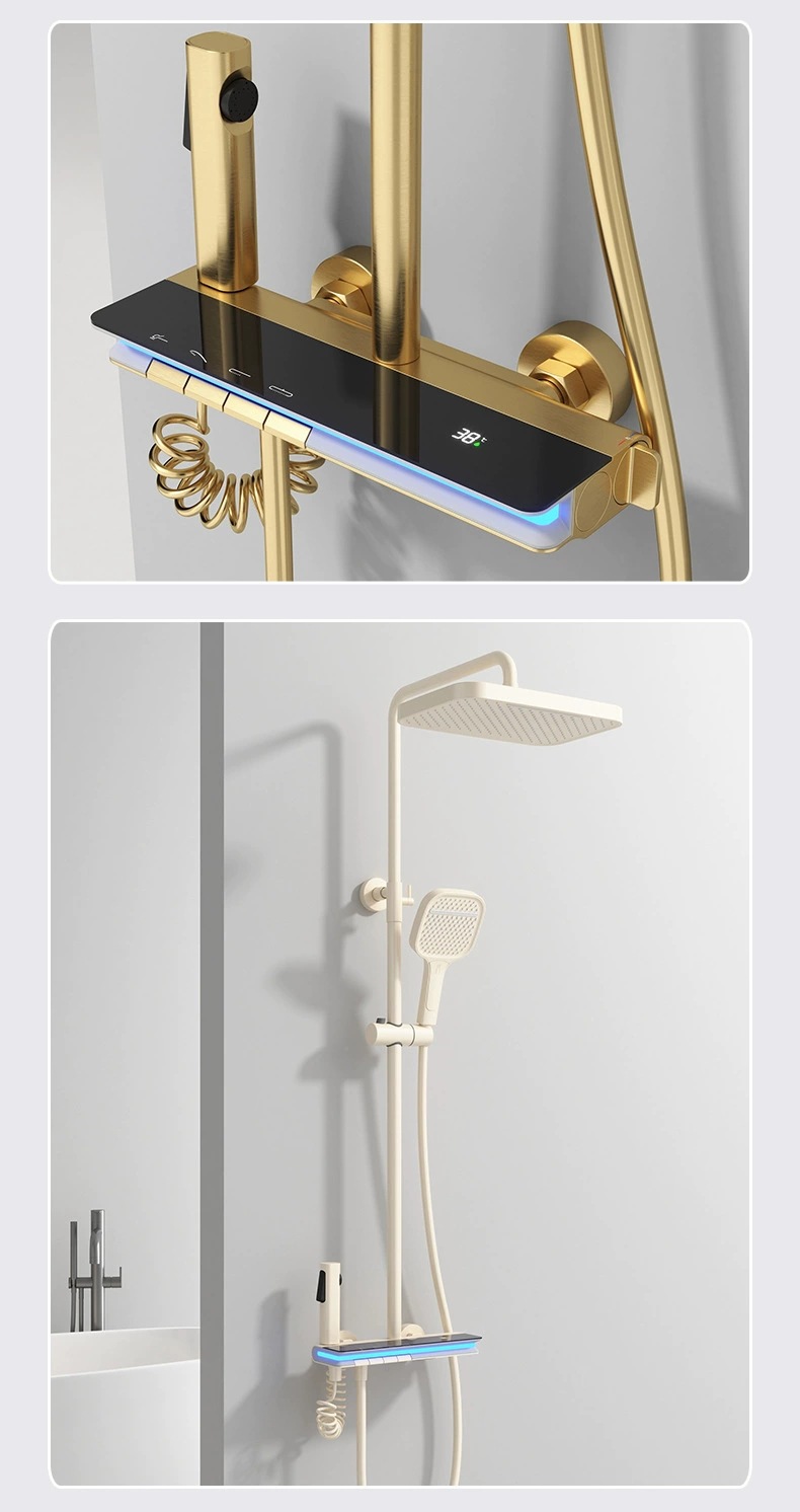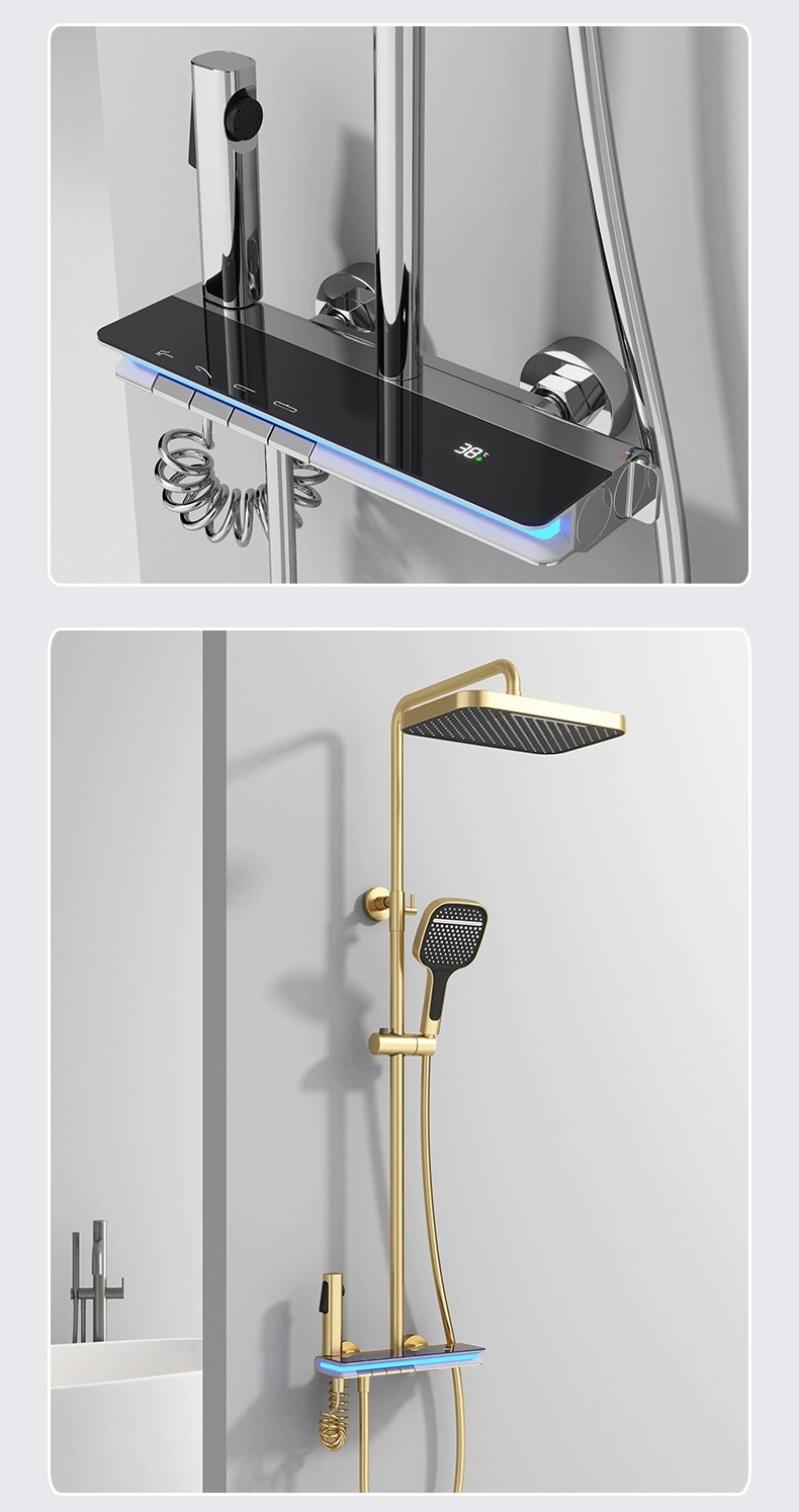 탑 스프레이 샤워 세트 구리 LED 분위기 조명 레인 온도 조절 스마트 디지털 디스플레이 부스터 샤워 세트 샤워