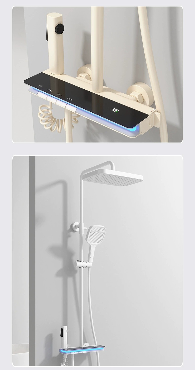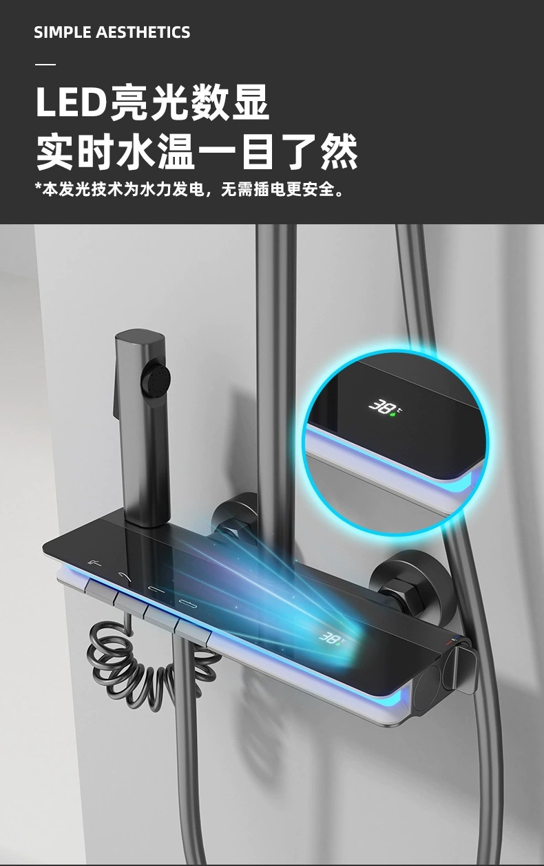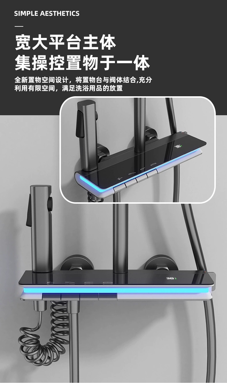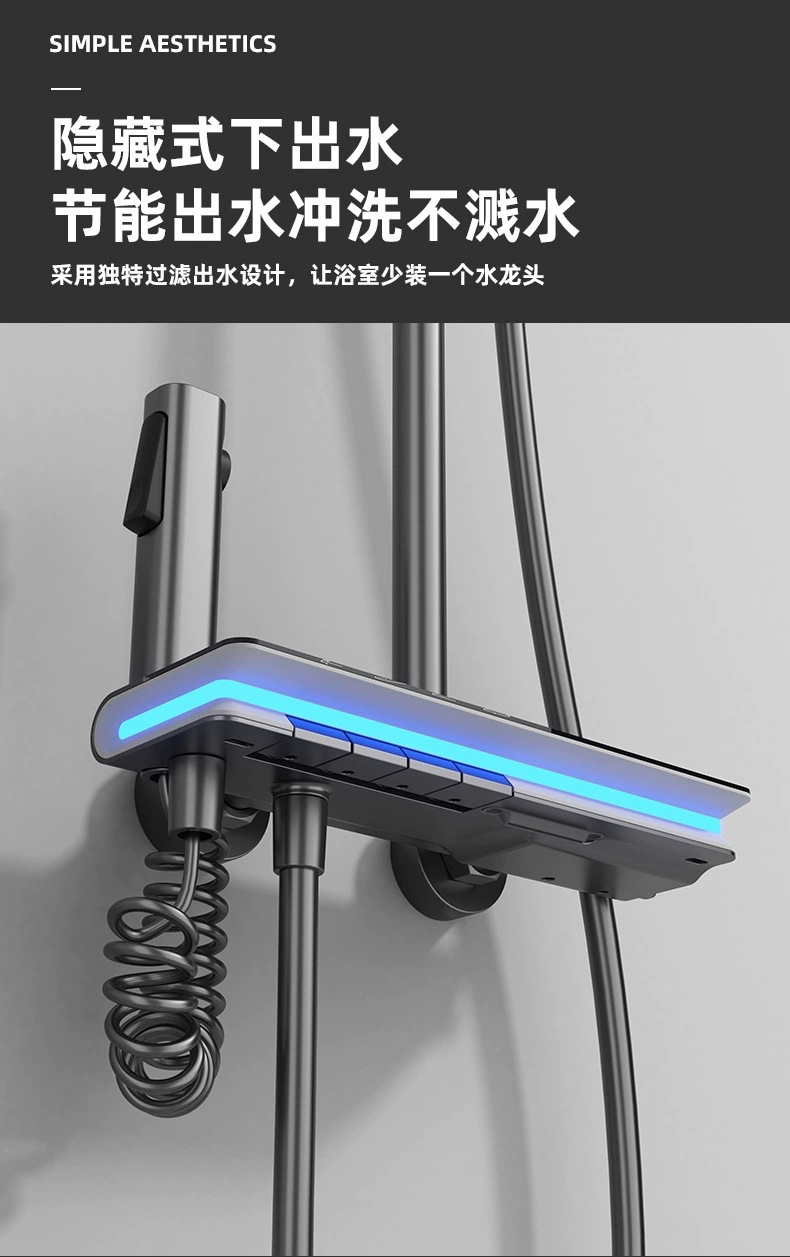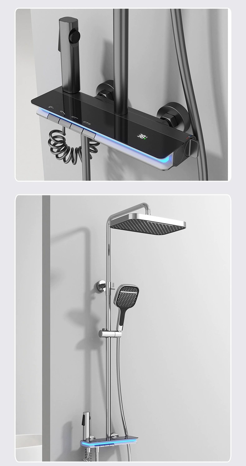탑 스프레이 샤워 세트 구리 LED 분위기 조명 레인 온도 조절 스마트 디지털 디스플레이 부스터 샤워 세트 샤워