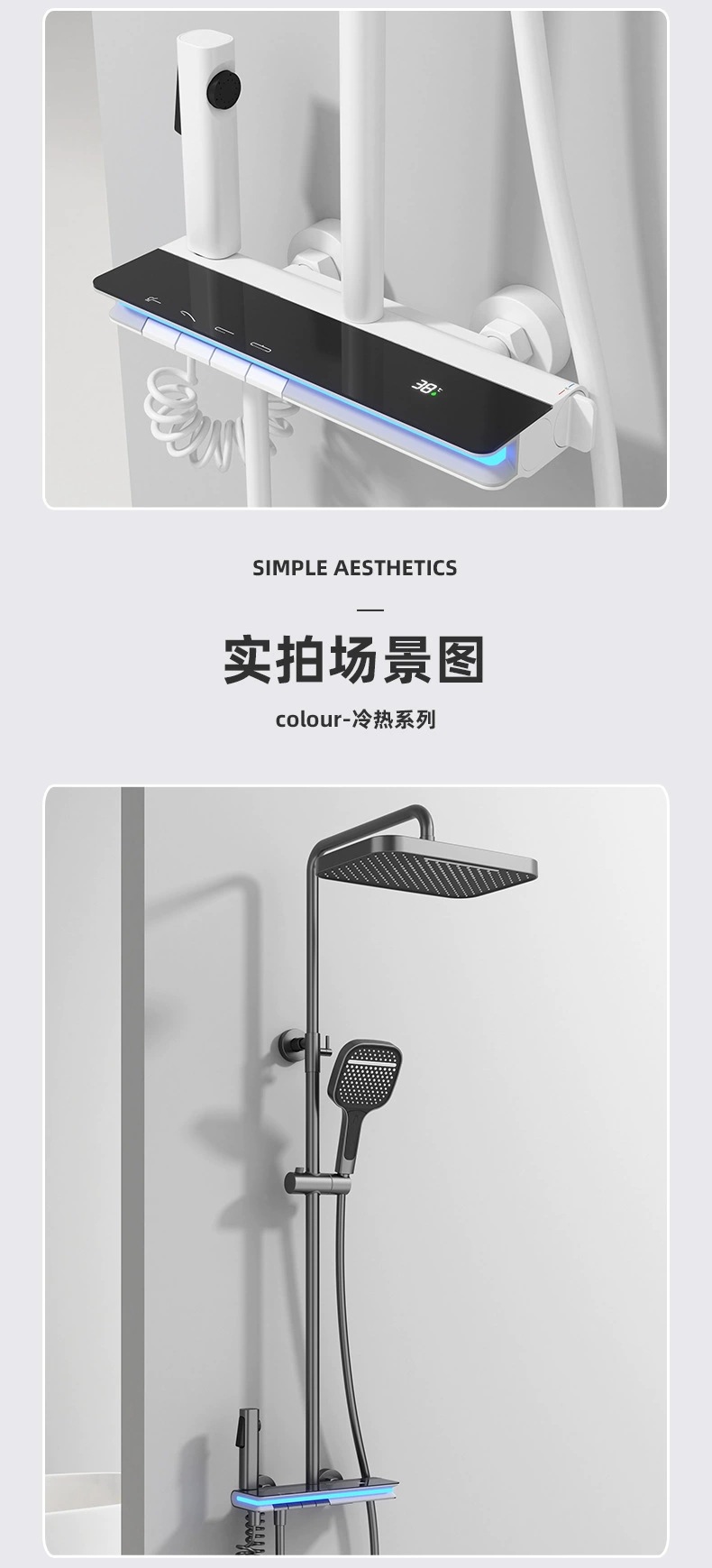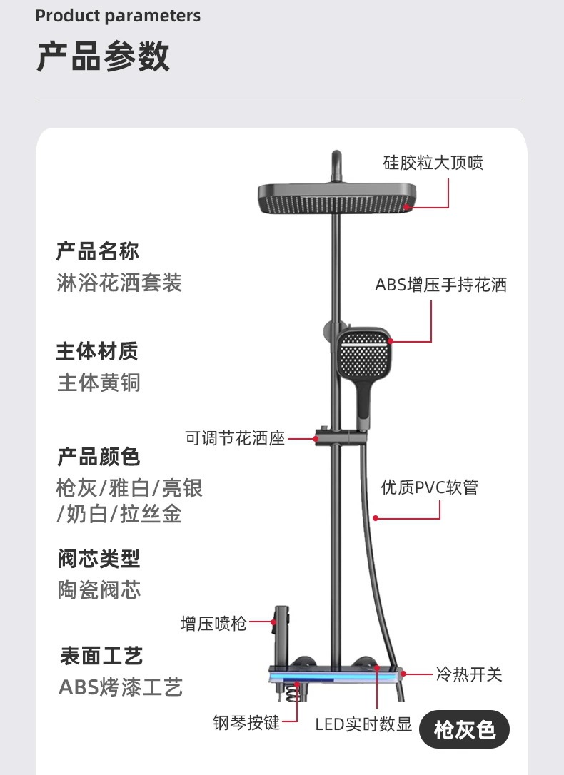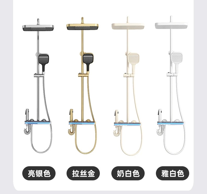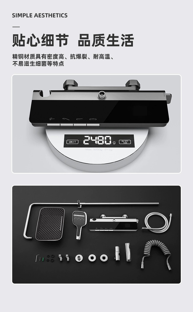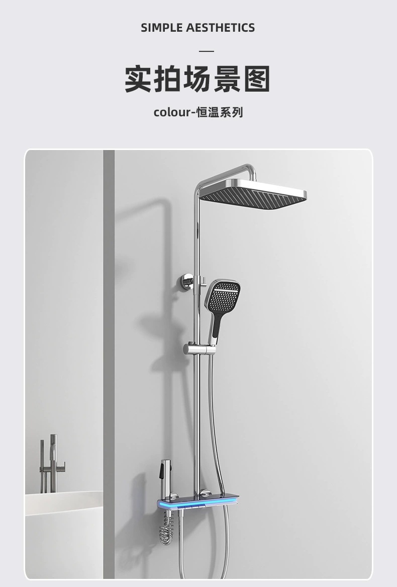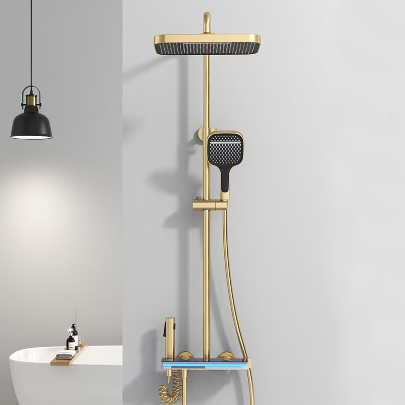 탑 스프레이 샤워 세트 구리 LED 분위기 조명 레인 온도 조절 스마트 디지털 디스플레이 부스터 샤워 세트 샤워