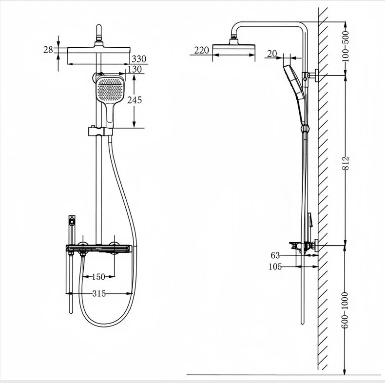 • 건 그레이 대형 샤워 - 뜨겁고 차가운 스타일