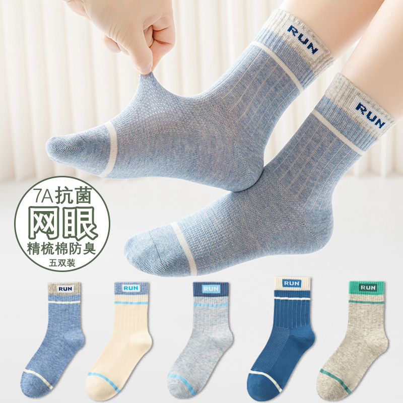 소년 양말 봄과 가을 얇은 풀 콤비 코튼 뼈없는 땀 흡수 탈취제 중 및 대형 어린이 여름 미드 튜브 양말 스포츠