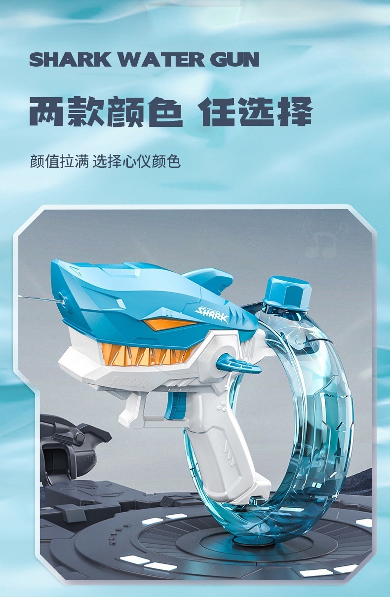 국경 간 새로운 소년과 소녀 상어 전기 물총 어린이 장난감 물 스프레이 여름 물놀이 완전 자동 연속 물총