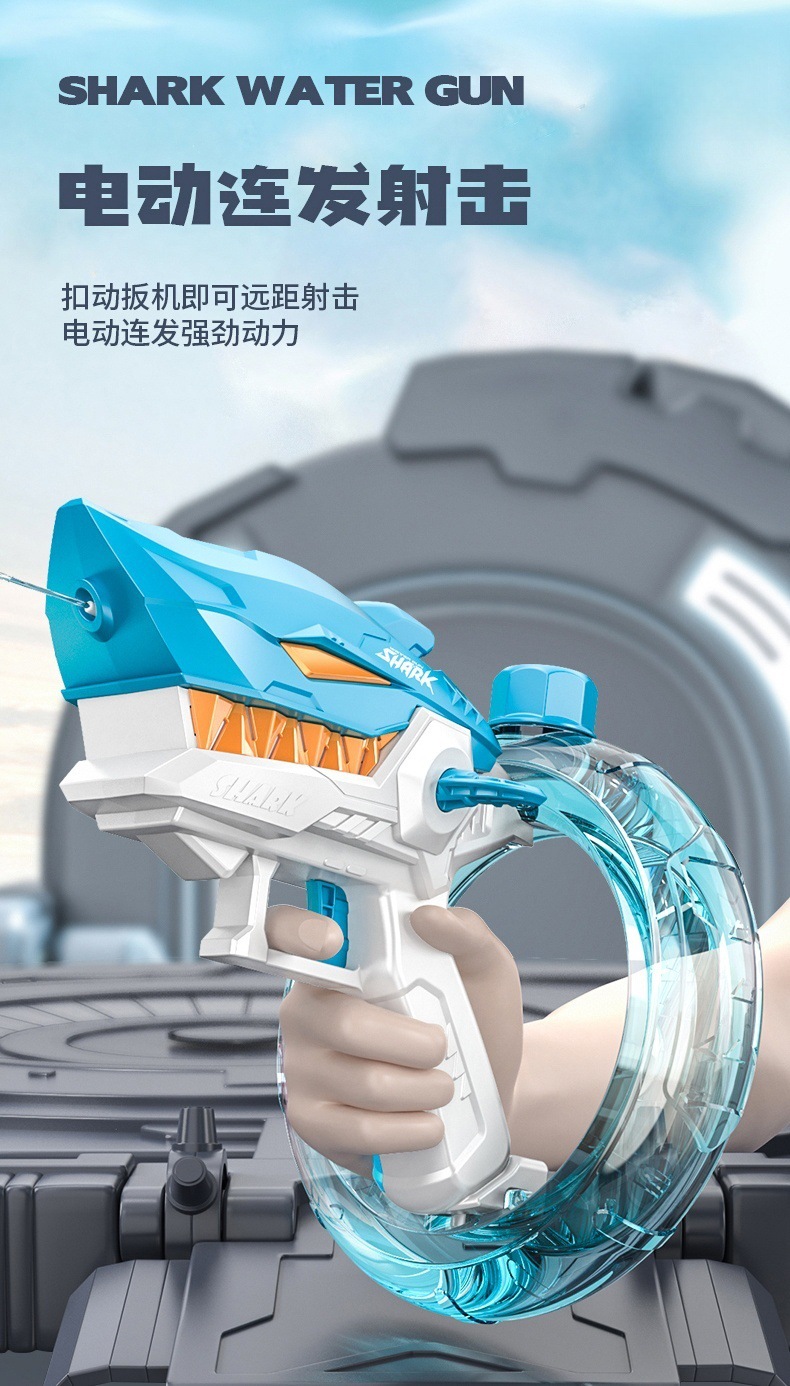 국경 간 새로운 소년과 소녀 상어 전기 물총 어린이 장난감 물 스프레이 여름 물놀이 완전 자동 연속 물총스토어 가기