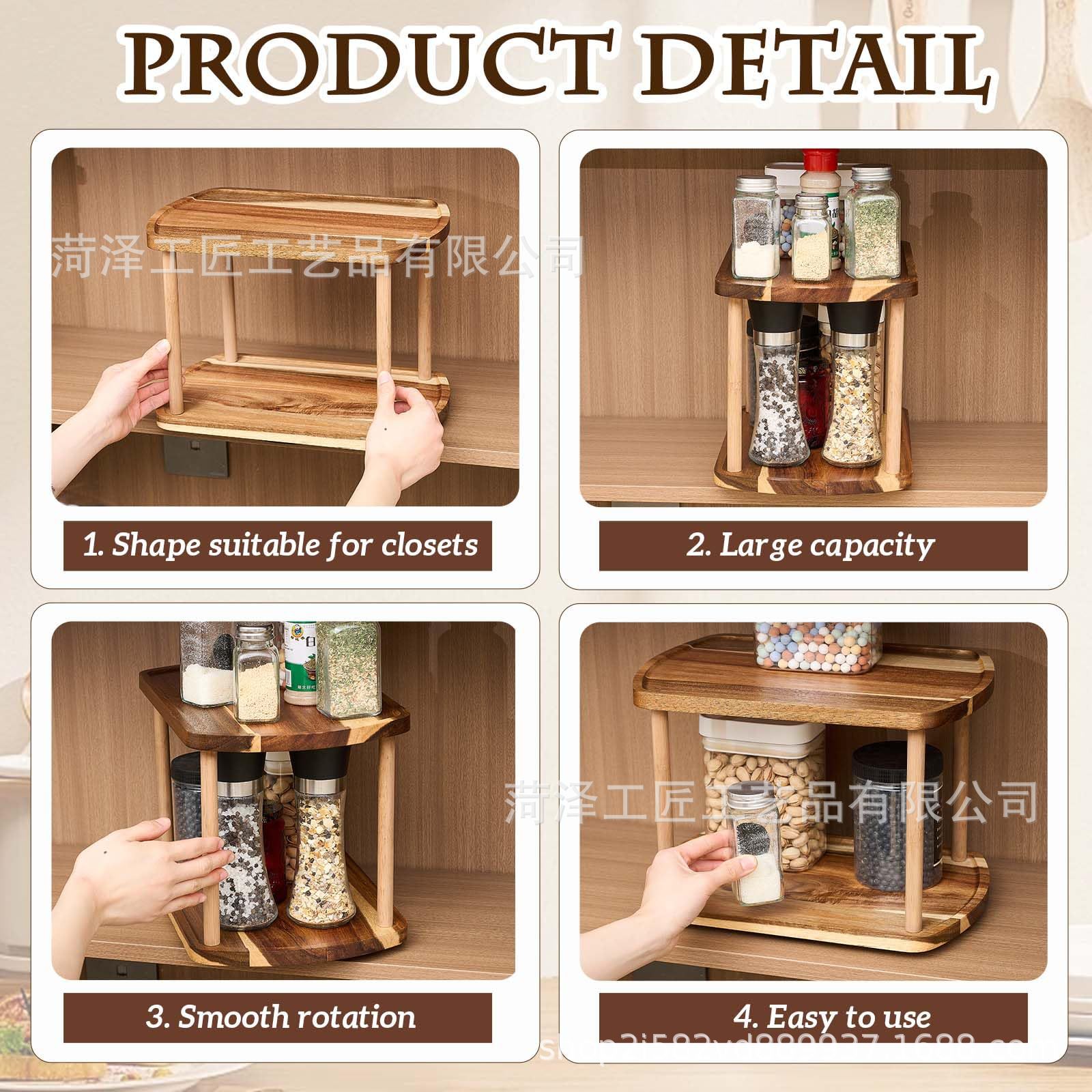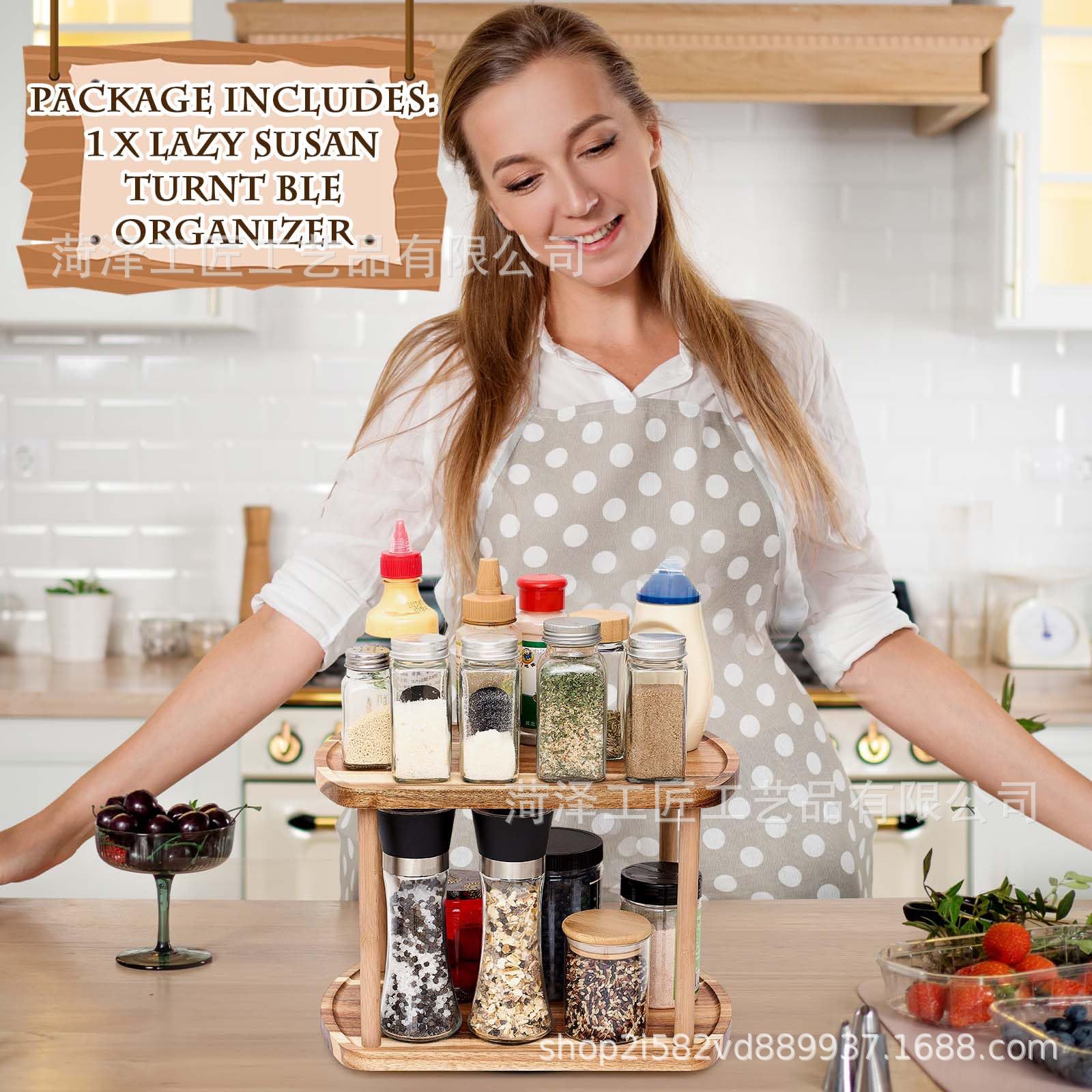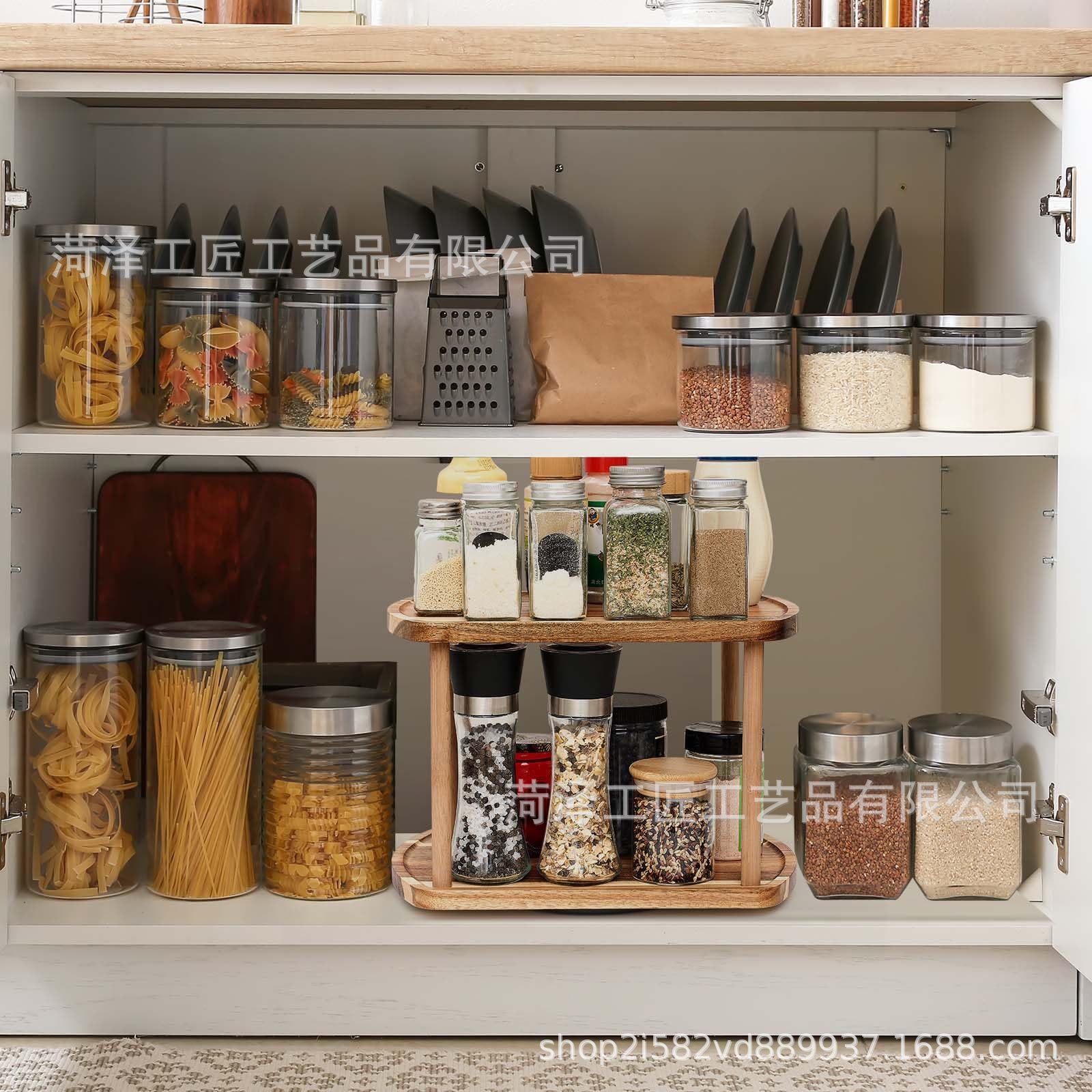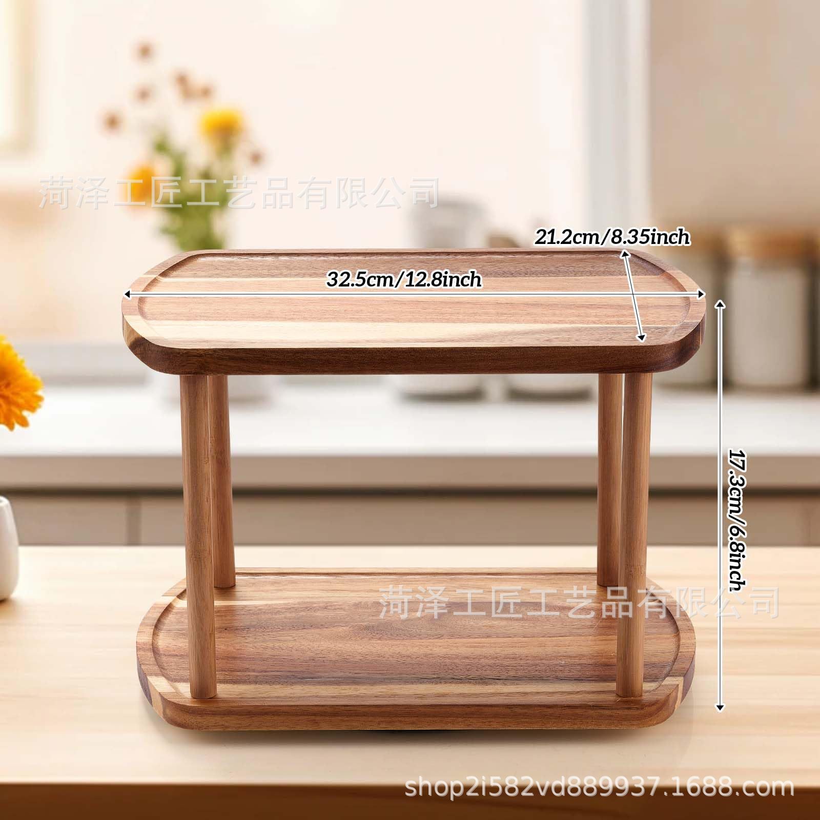 단단한 나무 회전식 조미료 랙 주방 조리대 정리 및 보관 랙 화장품 보관을 위한 이중 회전식 보관 랙스토어 가기